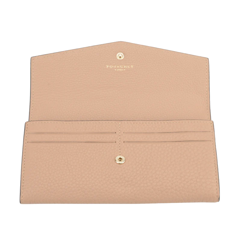 Ce grand porte-monnaie de couleur mastic de la marque Pourchet est l’accessoire idéal pour allier style et praticité. Fabriqué en cuir de veau texturé, il offre une allure élégante tout en garantissant une bonne durabilité grâce à sa texture légèrement granuleuse.