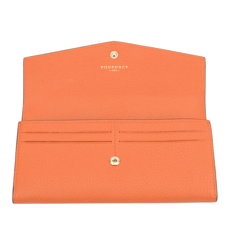 Ce grand porte-monnaie orange de la marque Pourchet est l’accessoire idéal pour allier style et fonctionnalité. Sa couleur orange vif apporte une touche de modernité et de fraîcheur à votre quotidien.