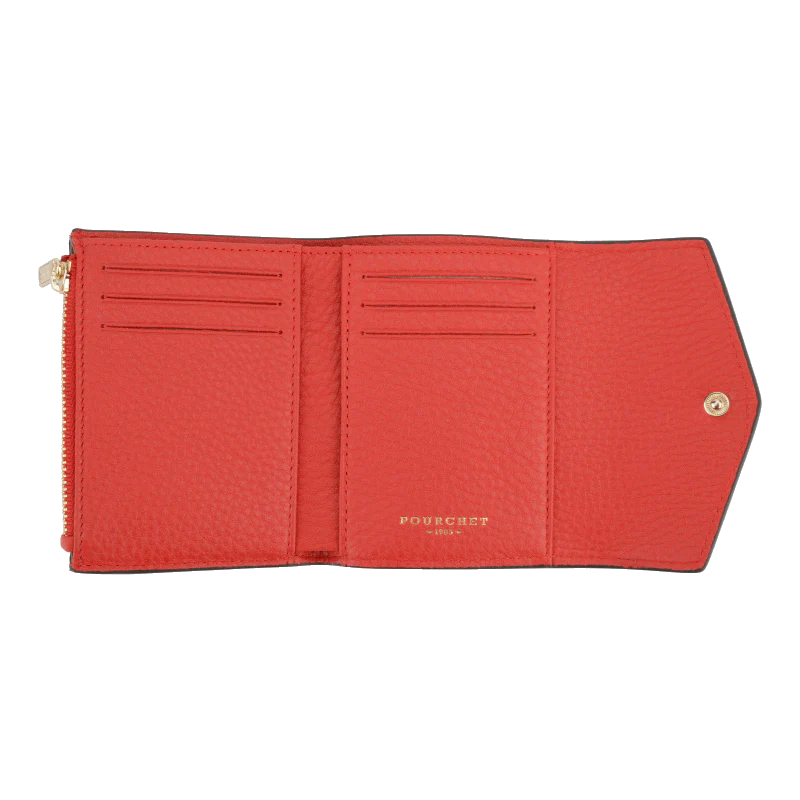 Ce porte-monnaie rouge vif de la marque Pourchet est un accessoire à la fois pratique et élégant. Conçu en cuir de veau, il se distingue par sa finition en cuir texturé, offrant une sensation de qualité et de durabilité.