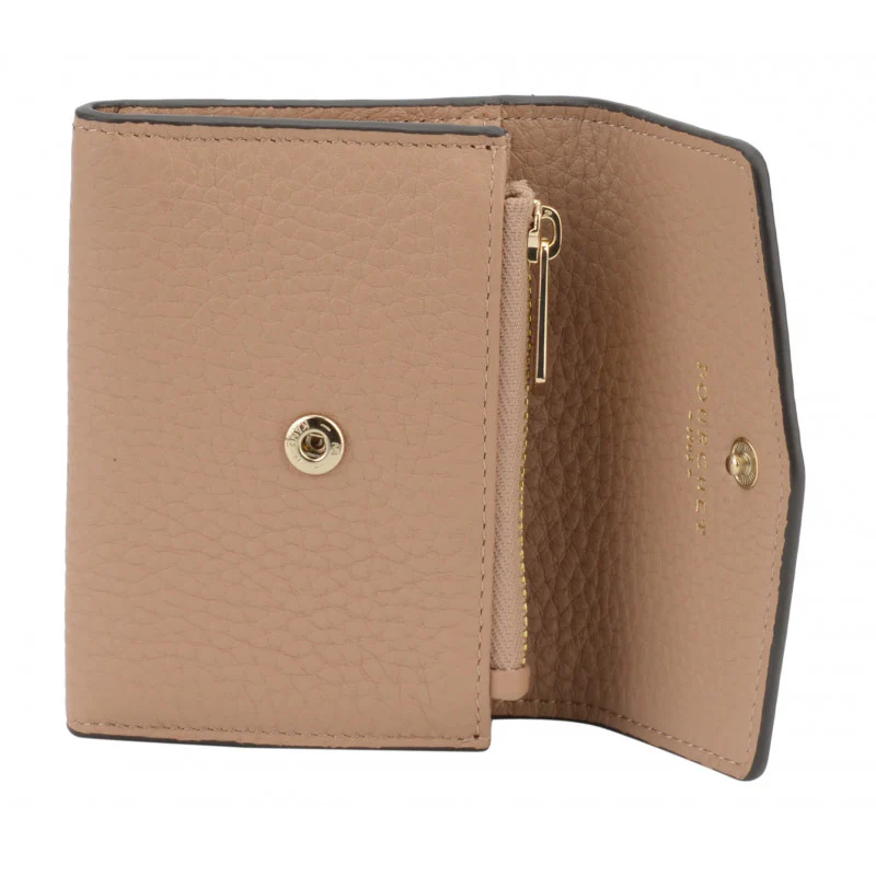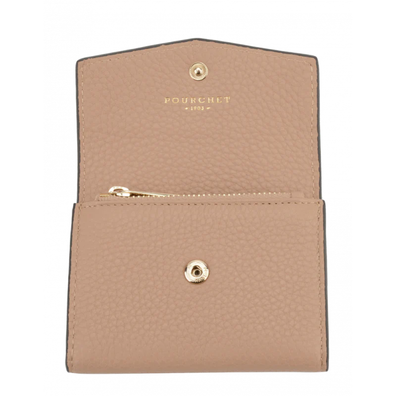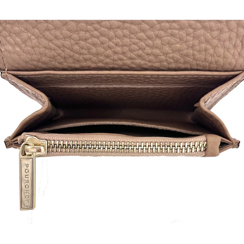 Ce petit porte-monnaie de couleur mastic est un accessoire élégant et pratique, idéal pour les femmes modernes. Fabriqué en cuir de veau texturé, il offre une sensation de qualité et de durabilité, tout en ajoutant une touche de sophistication à votre quotidien.