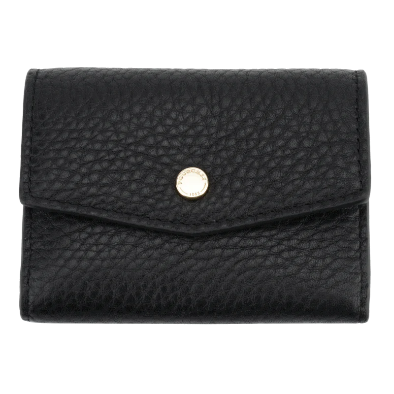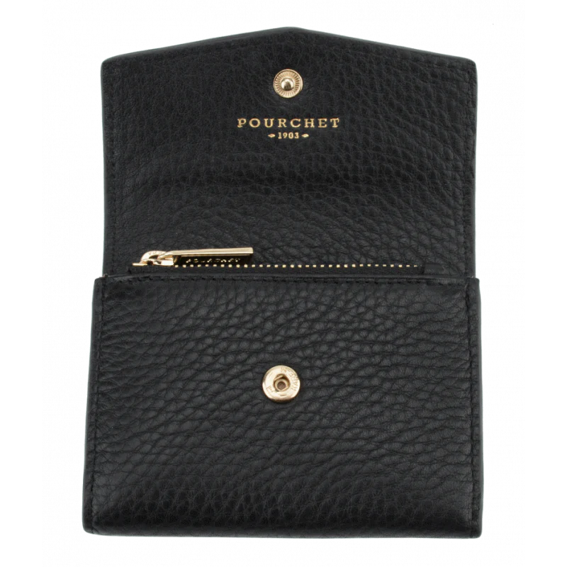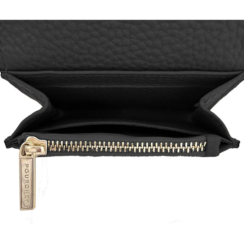 Le Petit porte-monnaie noir de la marque Pourchet est l’accessoire parfait pour allier élégance et praticité. Conçu en cuir de veau, il présente une texture raffinée qui lui confère une allure sophistiquée tout en assurant une durabilité à long terme.