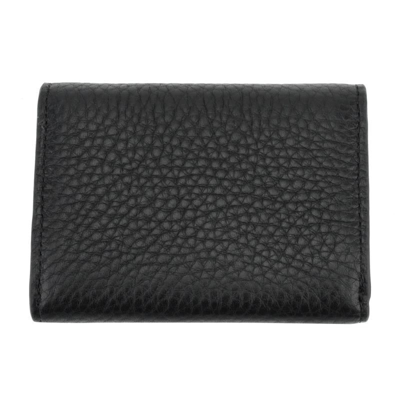 Avec des dimensions de 11.5 x 8.3 x 2.5 cm, ce porte-monnaie compact et rectangulaire se glisse aisément dans un sac à main ou une poche. Sa couleur noire classique permet de l’associer facilement avec divers styles vestimentaires.