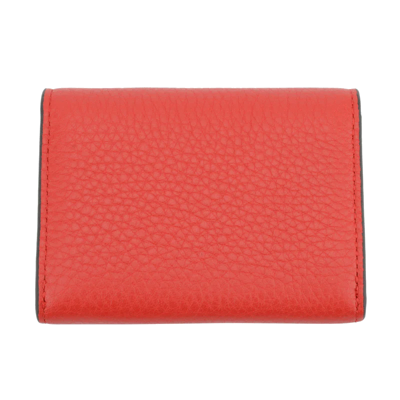 Fabriqué en cuir de veau texturé, ce porte-monnaie se distingue par sa couleur rouge vif, qui apporte une touche dynamique à vos accessoires. Sa forme rectangulaire avec des bords légèrement arrondis lui confère un style moderne et raffiné.