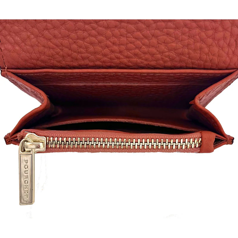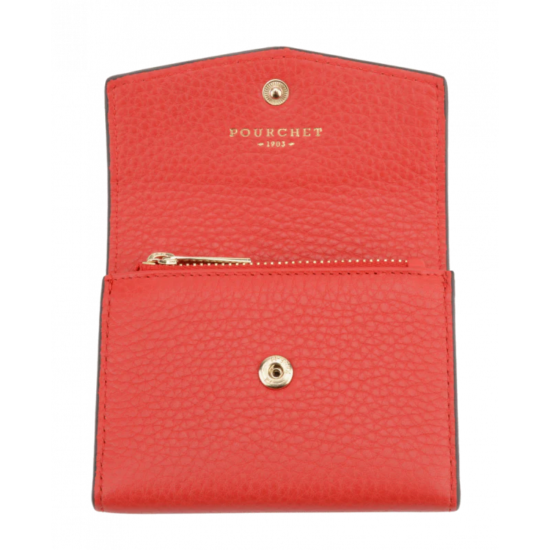 Petit porte-monnaie rouge vif de la marque Pourchet, conçu pour allier élégance et praticité. Ce modèle compact est parfait pour un usage quotidien, avec des dimensions de 11.5 x 8.3 x 2.5 cm.
