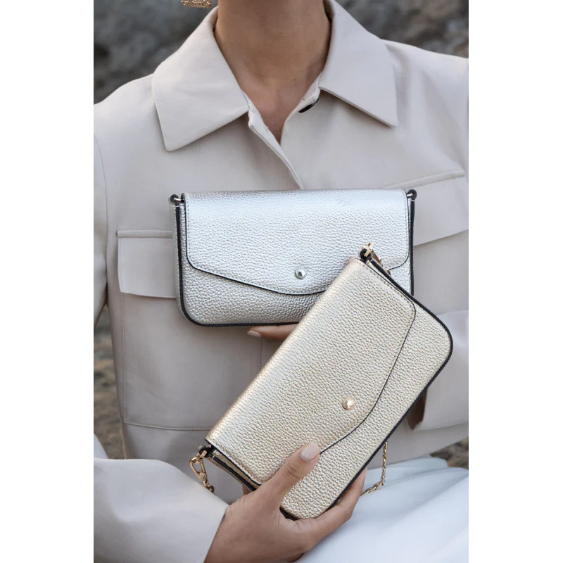 Avec son design chic et fonctionnel, le Club | Sac pochette argentée est un accessoire incontournable pour toute femme à la recherche d’un style moderne et raffiné.