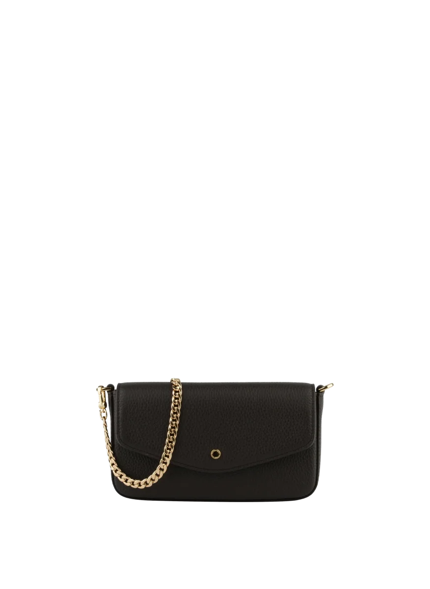 Ce sac pochette est équipé de deux types de bandoulières : une chaîne en métal doré et une bandoulière en cuir, vous permettant de le porter de différentes manières, que ce soit à la main ou en bandoulière. À l’intérieur, vous trouverez un agencement bien pensé avec une poche zippée pour un rangement sécurisé de vos petits objets.