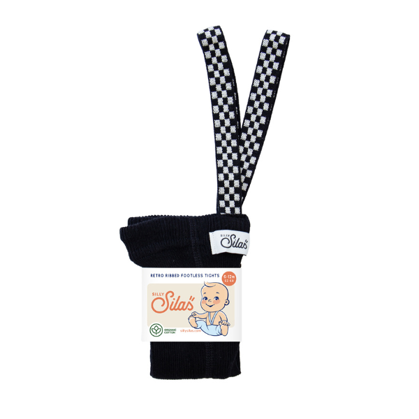 Collants à bretelles damier sans pieds | Black checked – Silly Silas