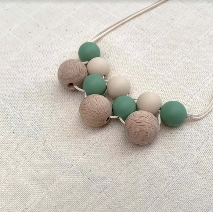 Le collier de portage et/ou d’allaitement se compose de perles en silicones et en bois de hêtre. L’innocuité des perles est testée en laboratoire français. Les perles en bois de hêtre sont issues de forêts françaises durablement gérées et contrôlées.