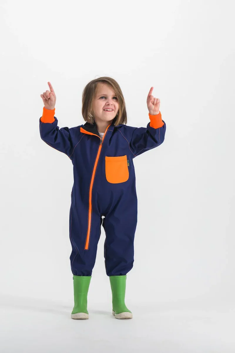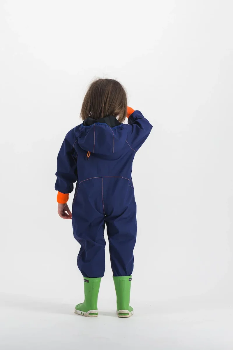 Exceptionnellement résistante à l’eau, au vent et à l’abrasion, la combinaison est idéale pour protéger des éléments météo, jouer, sauter, glisser, courir tout en restant au sec, même à 4 pattes ! Elle recouvre l’enfant de la tête au pied avec une capuche intégrée et ajustable. Bien plus souple et respirante qu’une combinaison de pluie ou de ski classique.