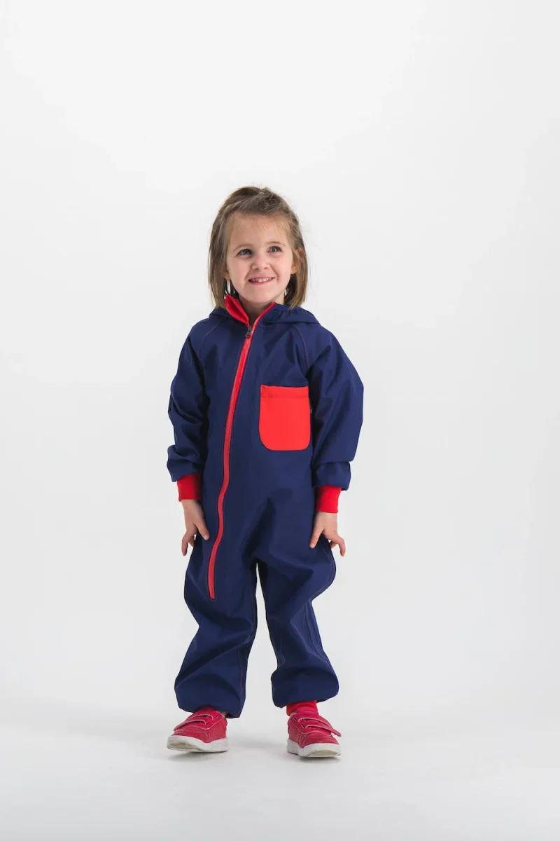 Exceptionnellement résistante à l’eau, au vent et à l’abrasion, la combinaison est idéale pour protéger des éléments météo, jouer, sauter, glisser, courir tout en restant au sec, même à 4 pattes ! Elle recouvre l’enfant de la tête au pied avec une capuche intégrée et ajustable. Bien plus souple et respirante qu’une combinaison de pluie ou de ski classique.