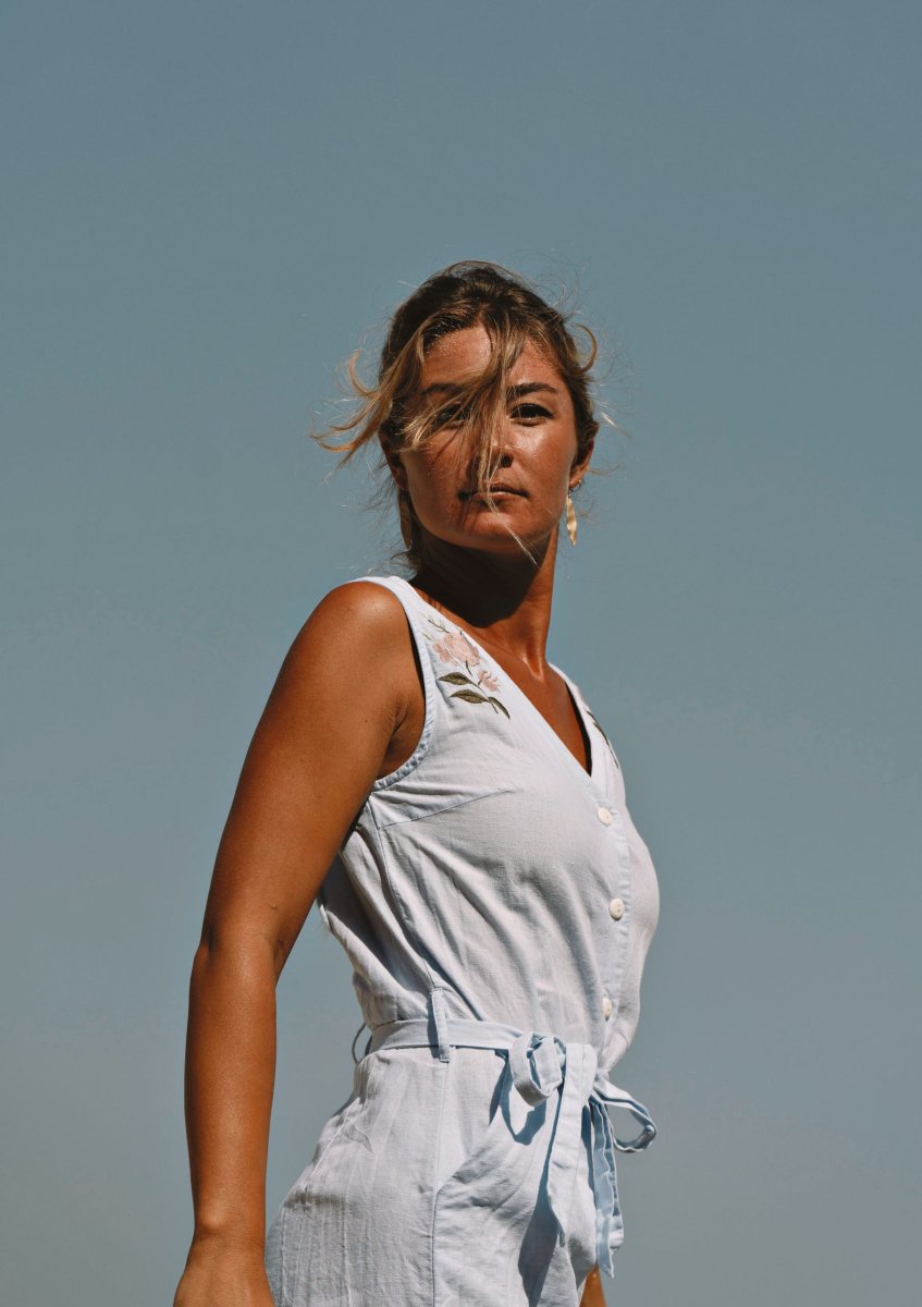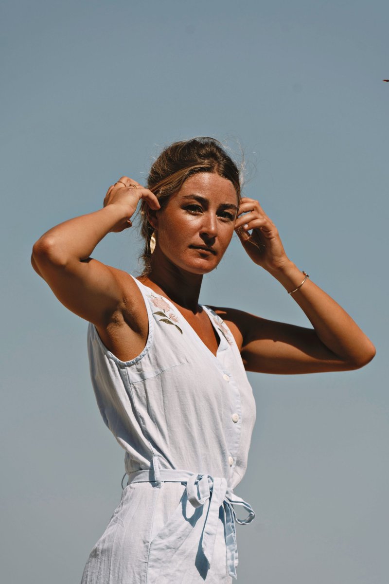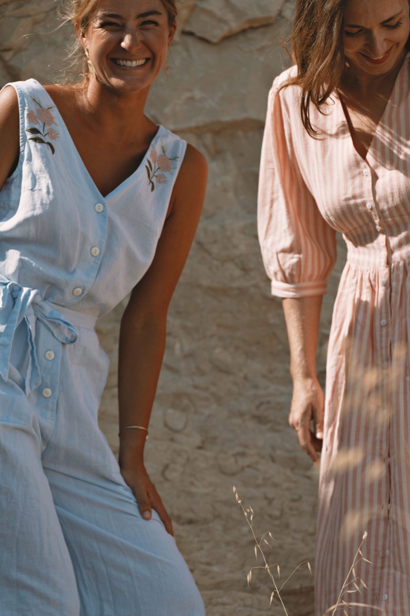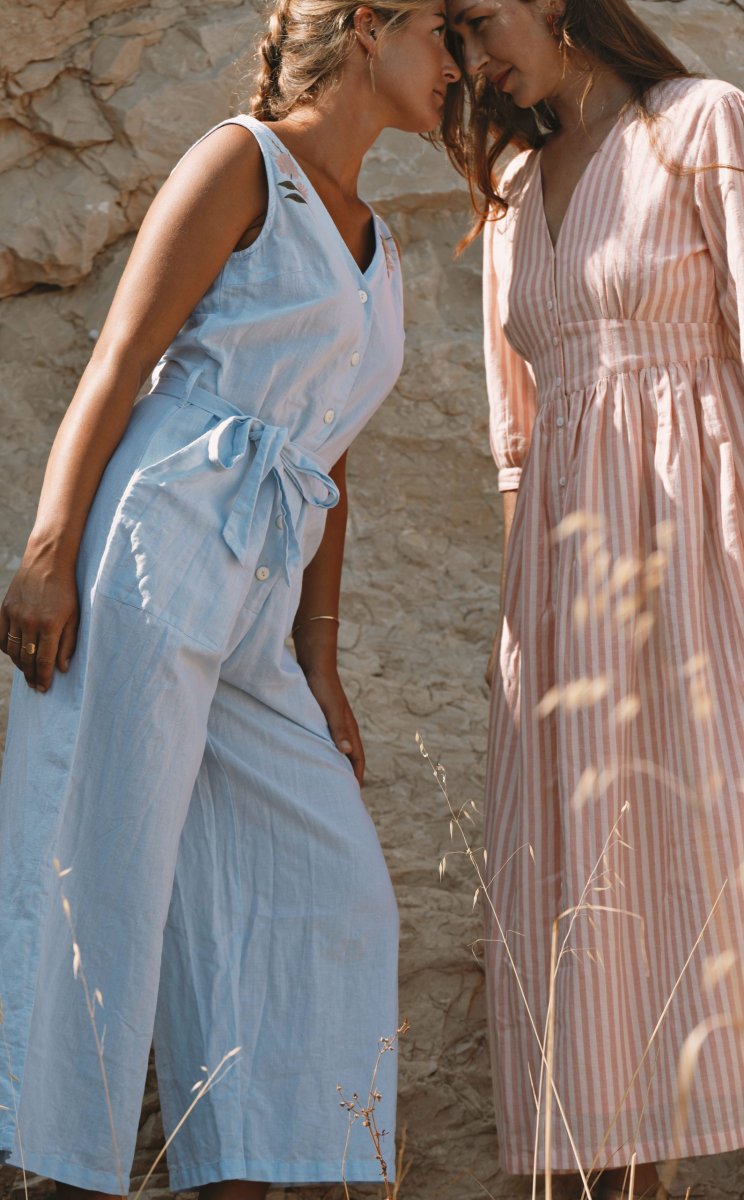 La Combinaison Rosa est une pièce d’exception, alliant élégance et confort. Confectionnée en coton et lin bleu ciel, elle offre une matière noble, douce et respirante, parfaite pour les journées ensoleillées ou les occasions spéciales.