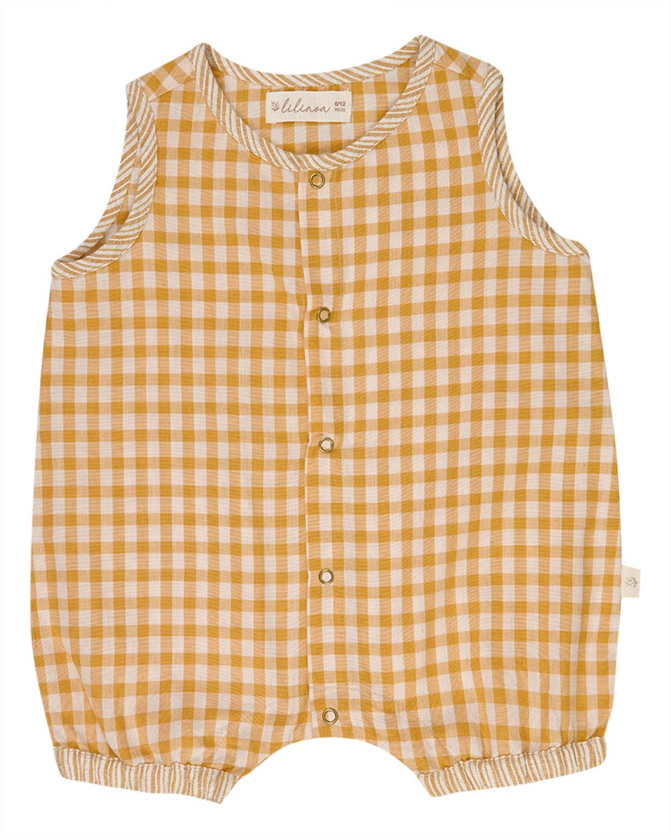 La Combinaison Théo est une pièce pratique et intemporelle pour les tout-petits. Confectionnée en 100% coton doux et respirant, elle séduit par son motif vichy camel au charme classique. Les pressions sur toute la longueur à l’avant facilitent l’habillage et le change, pour un confort optimal au quotidien. Idéale pour la maison comme pour les sorties, cette combinaison allie simplicité, douceur et fonctionnalité.