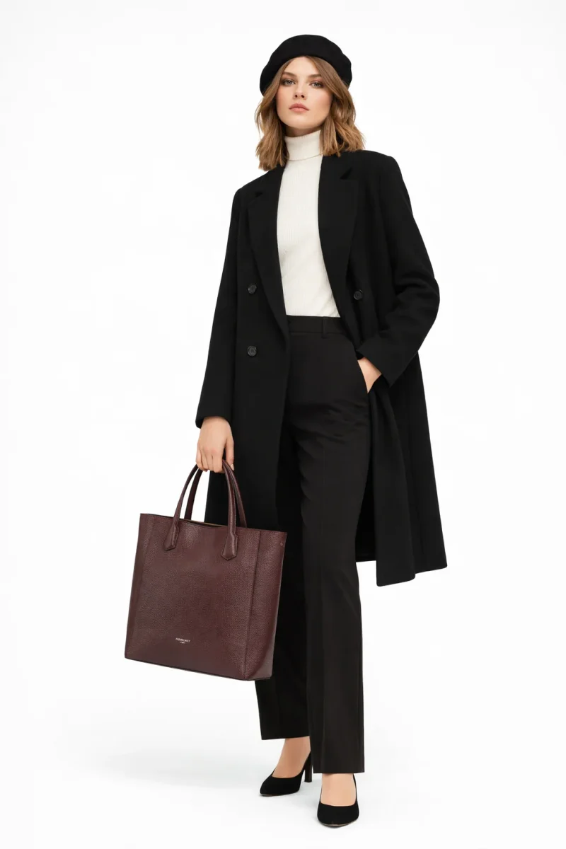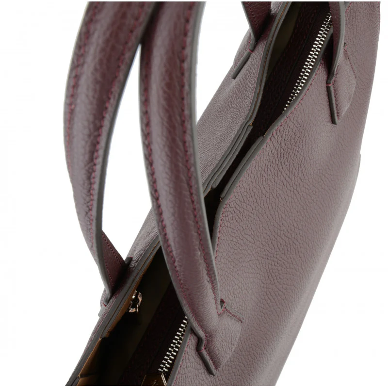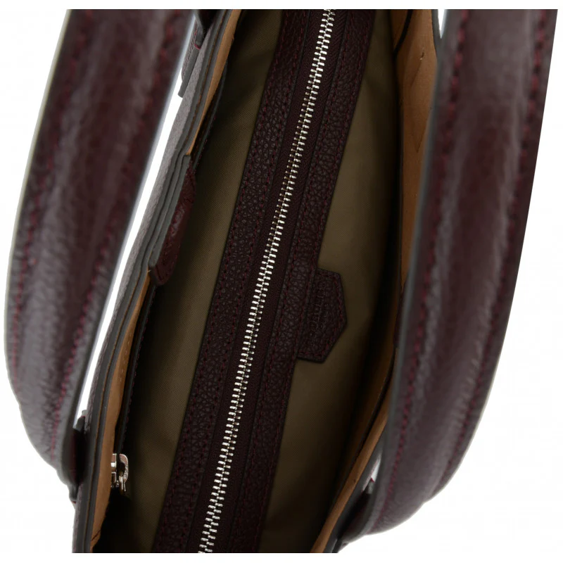 Avec ses dimensions de 30 x 35 x 11 cm, ce cabas a une forme rectangulaire avec des bords légèrement arrondis, permettant de se tenir debout lorsqu’il est posé. Sa teinte bordeaux riche et profonde apporte une touche de luxe, idéale pour s’associer à une variété de tenues, qu’elles soient décontractées ou plus habillées.