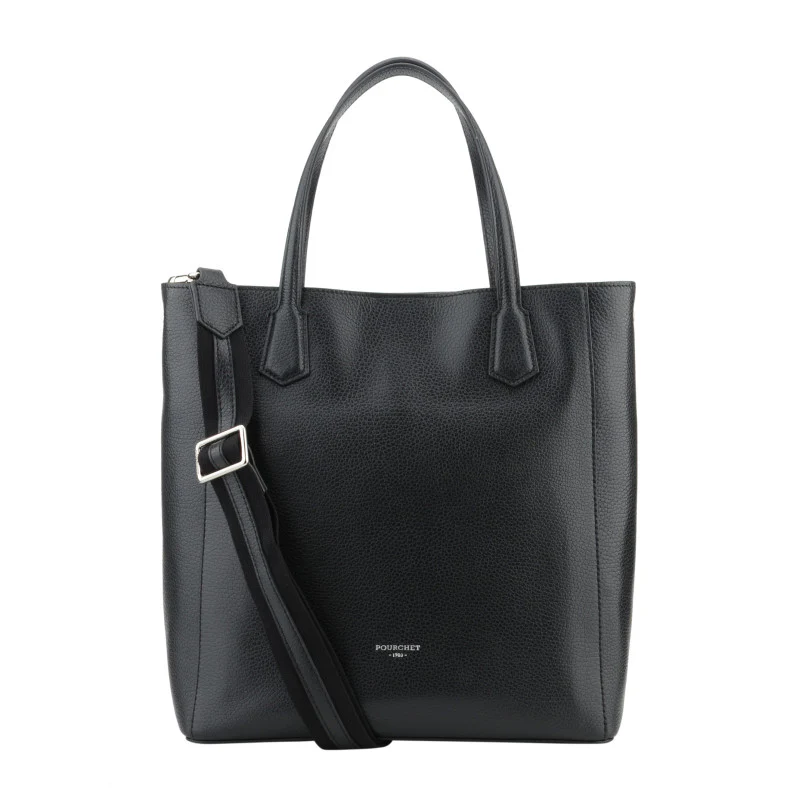 Le design du cabas est soigné, avec des poignées robustes assurant un confort optimal lors du transport. Le logo « Pourchet » est discrètement embossé sur le devant, ajoutant une touche de sophistication à l’ensemble. De plus, une fermeture éclair sur le dessus garantit la sécurité de vos affaires.
