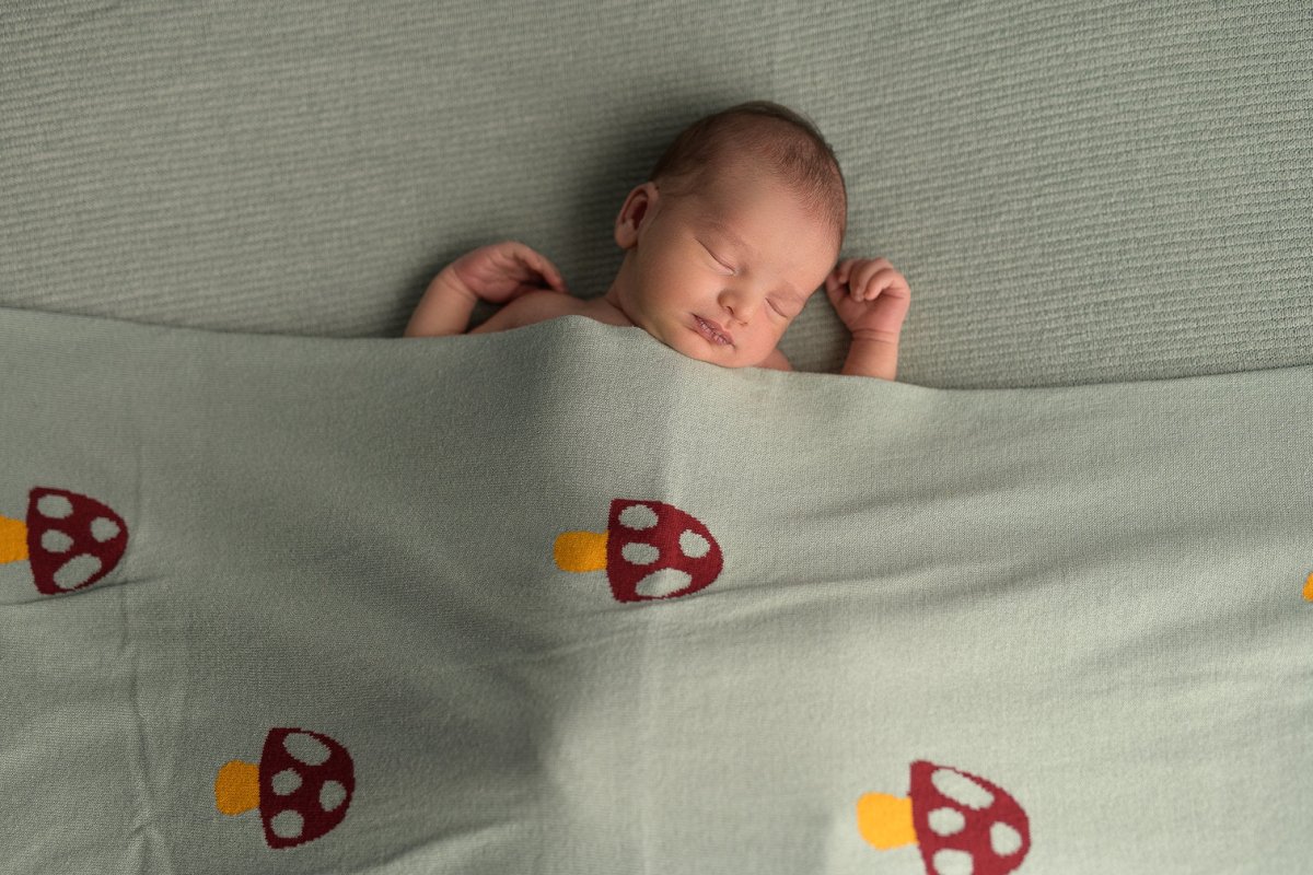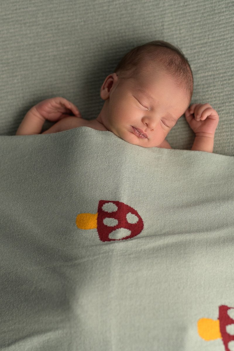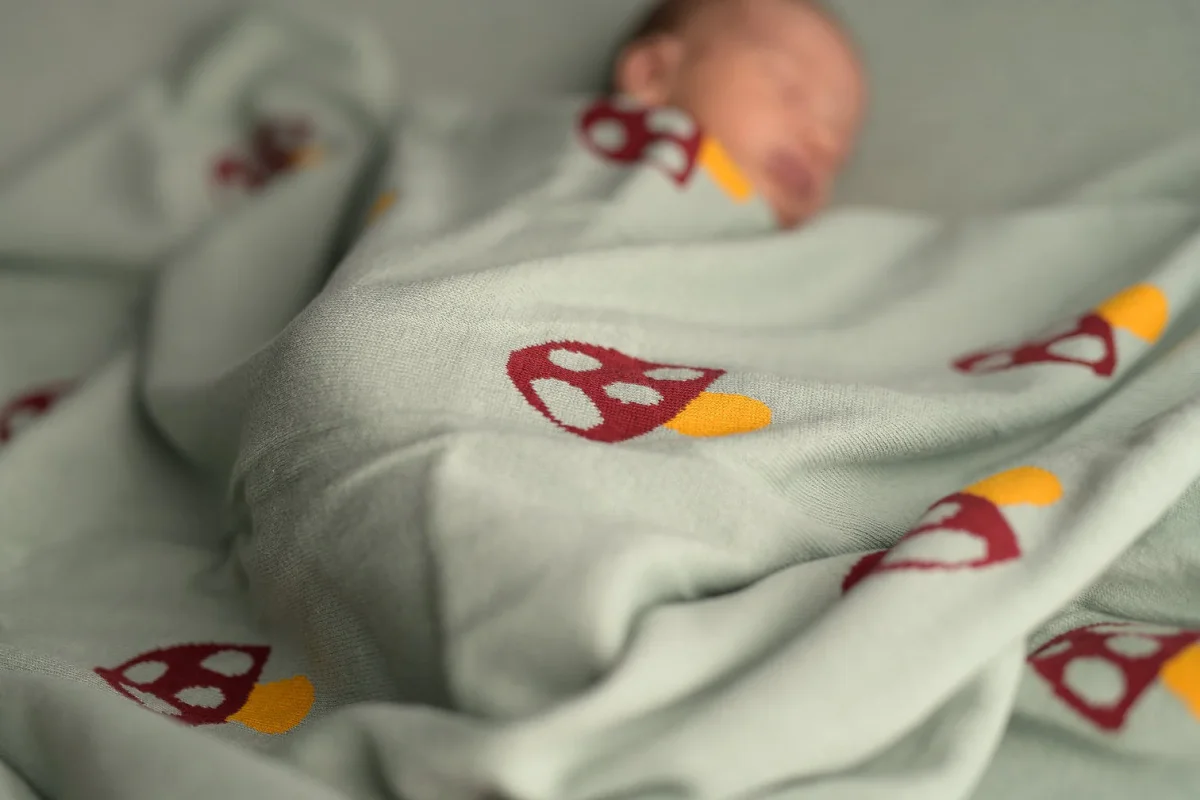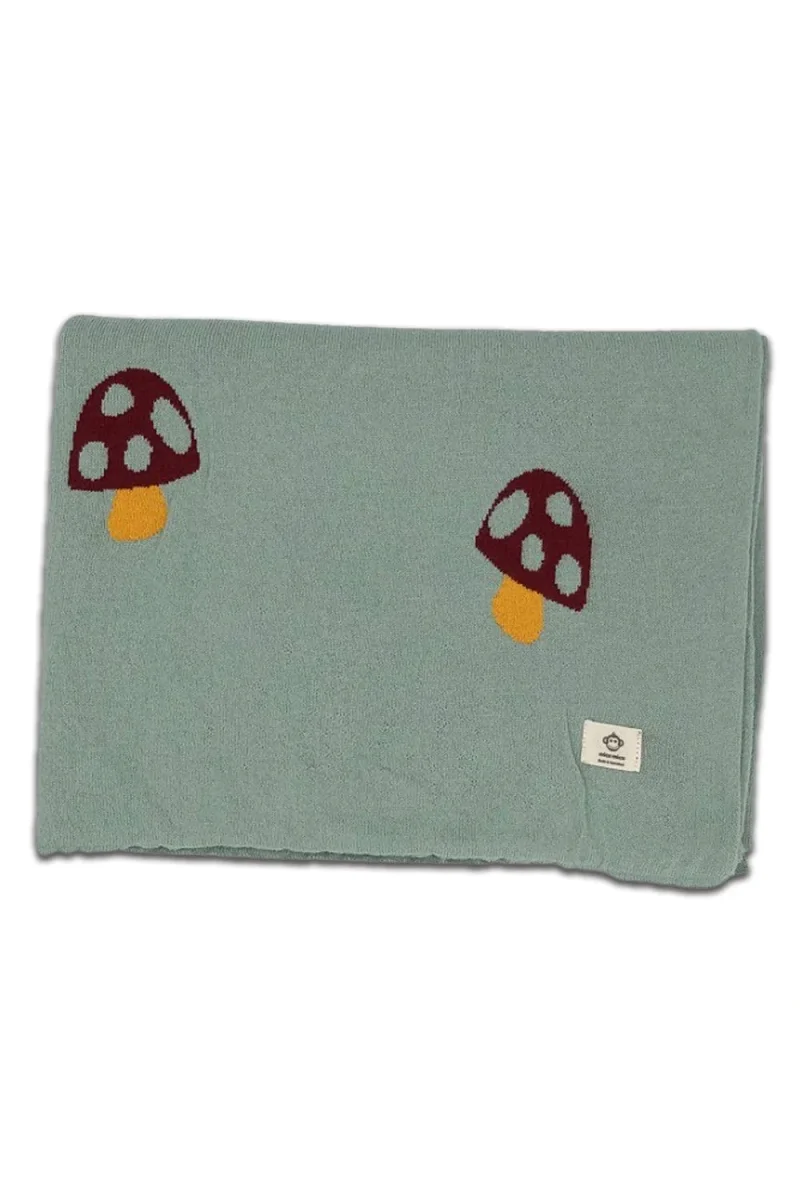 Couverture Bébé en Coton Bio Tissé Champignons Vert Pâle