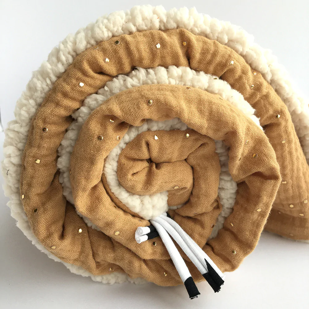 Couverture Bébé Sherpa Petits Pois Dorés Camel