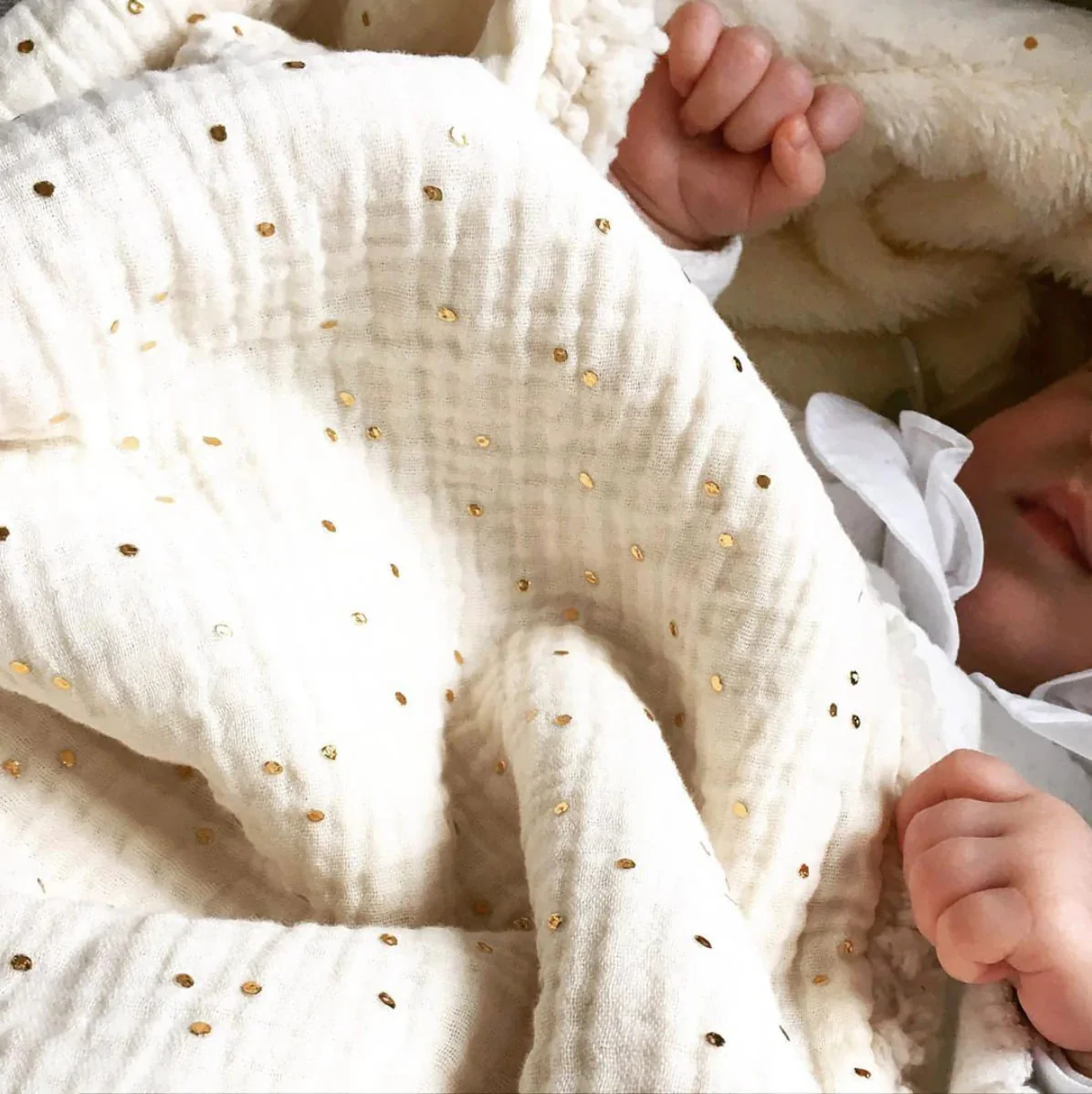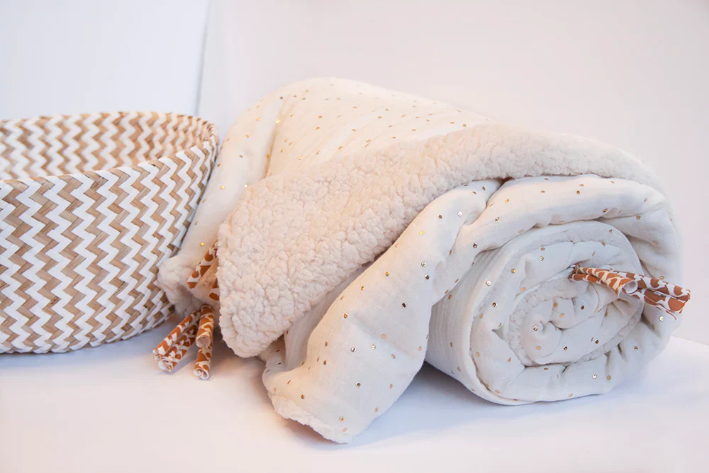 Couverture Bébé Sherpa Petits Pois Dorés Ecru