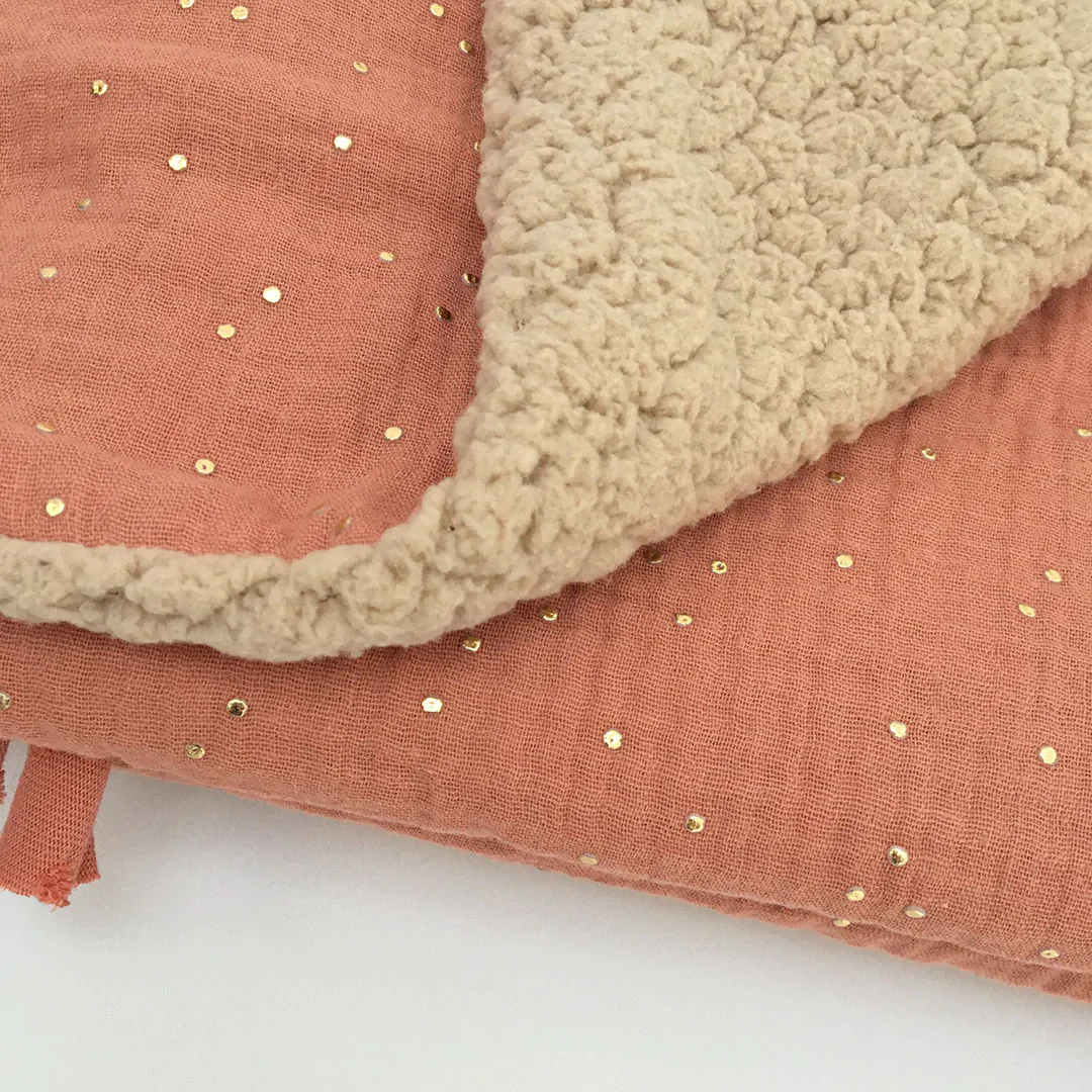 Couverture Bébé Sherpa Petits Pois Dorés Rose Marsala