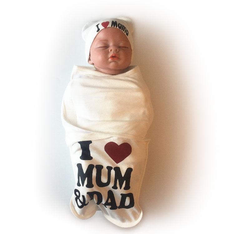 couverture emmaillotage pour bébé avec design I love Mum & dad