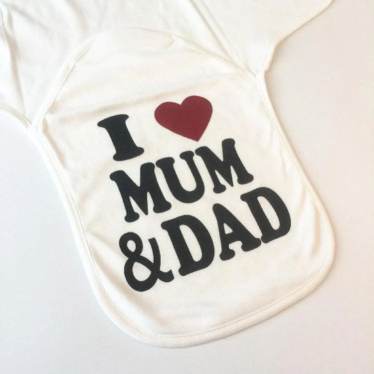 Cette couverture avec le design « I love Mum & Dad » est idéal pour offrir en cadeau pour une baby shower.