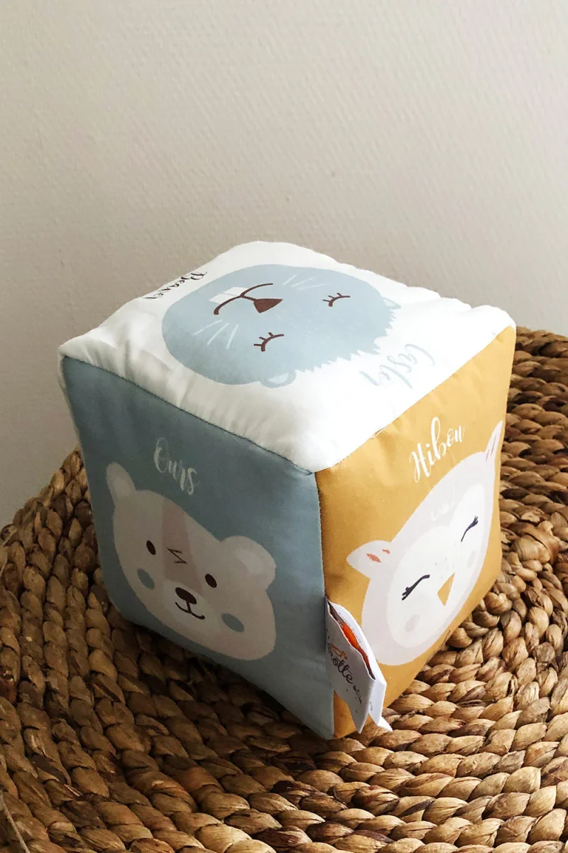 Bébé rêve part à la découverte du monde qui l’entoure? Le cube d’éveil Animaux de la Forêt en tissu va attirer toute son attention grâce à ses illustrations animales qui invitent au voyage. Son joli design et ses illustrations contrastées sont idéales pour les premiers mois de bébé et stimulent le développement visuel de bébé. Les textures différentes, papier bruissant et petite clochette à l’intérieur, aident au développement de la perception tactile. Autant de découvertes visuelles et tactiles pour les périodes de jeu.