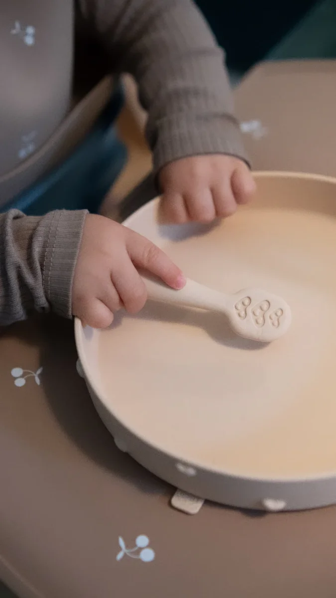 Cuillères d’apprentissage bébé coeurs | Taupe/Ivoire – Soina