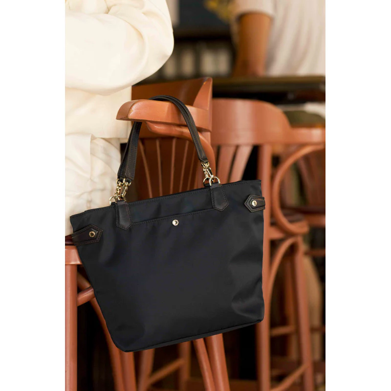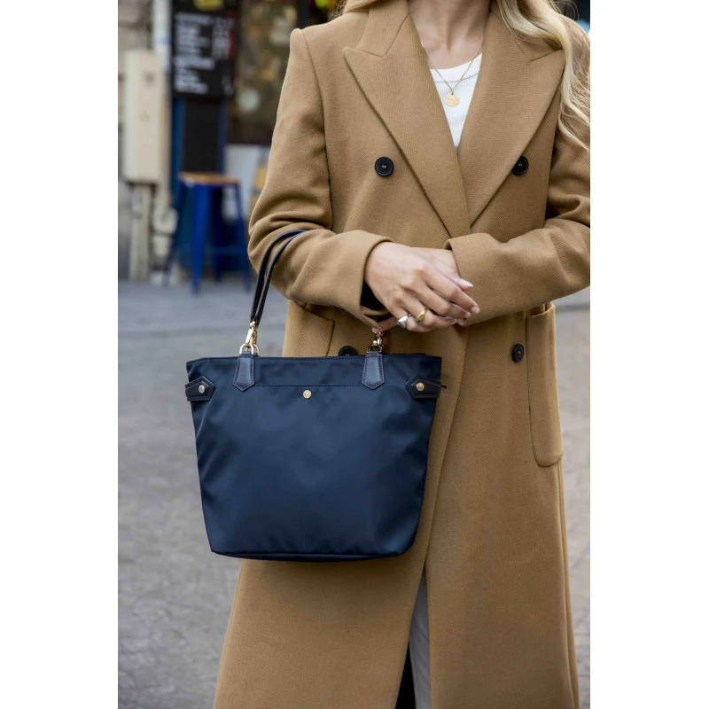 Conçu en nylon résistant, ce sac est parfait pour un usage quotidien. Ses poignées en cuir ajoutent une touche de sophistication, tandis que sa forme rectangulaire avec une base large facilite le rangement de vos essentiels. Les côtés légèrement arrondis confèrent au sac un aspect moderne et attrayant.