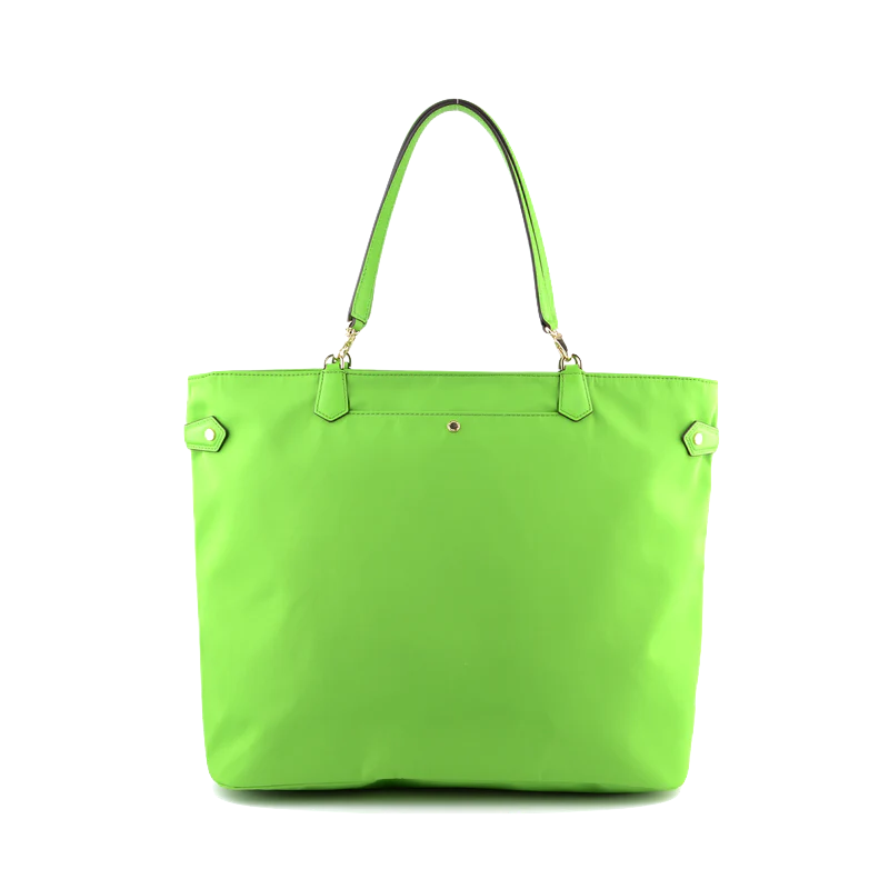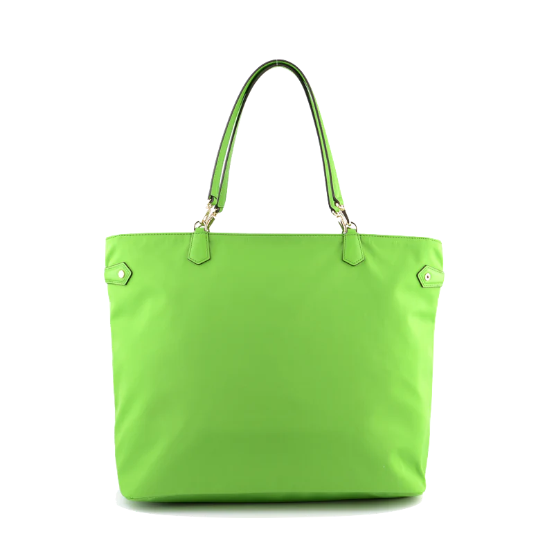 Fabriqué en nylon, ce sac est à la fois doux et durable, ce qui le rend facile à entretenir. La couleur anis, un vert vif, apporte une touche de fraîcheur à votre tenue. Les longues poignées permettent un port confortable à l’épaule, tandis que les accents métalliques dorés ajoutent une note d’élégance.