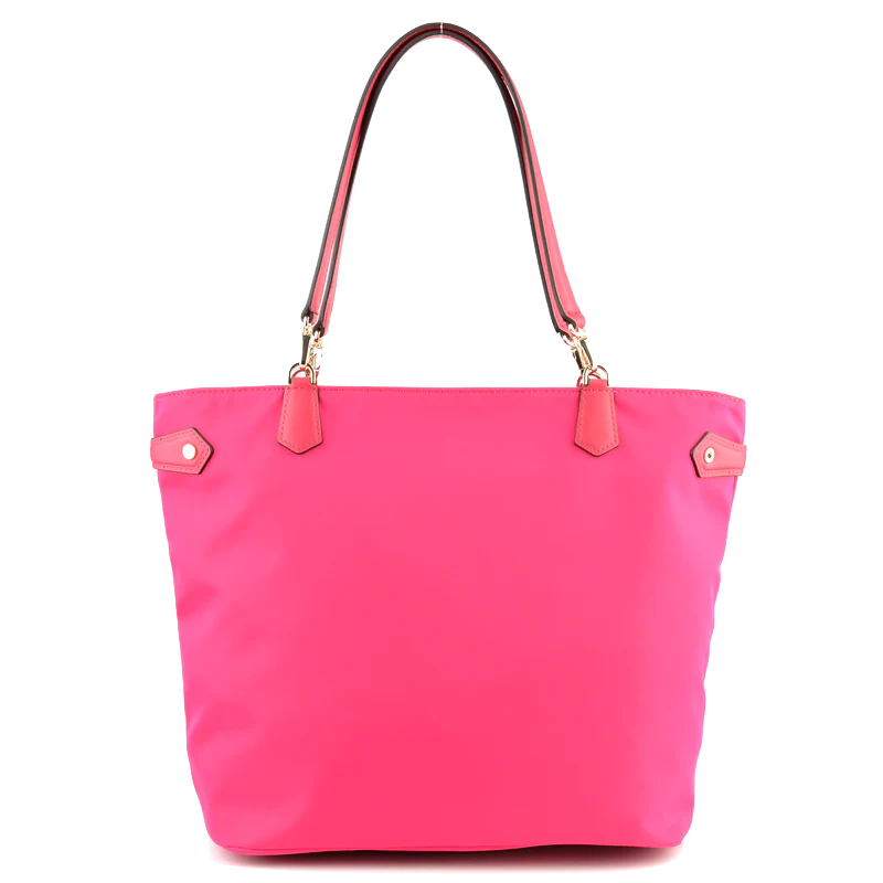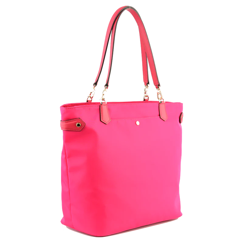 Ce modèle présente une forme rectangulaire avec des bords légèrement arrondis, offrant un aspect élégant et contemporain. Il est équipé de deux poignées longues qui permettent un porté épaule confortable. Les poignées, également en fuchsia, sont agrémentées d’accents en cuir ou cuir, ajoutant une touche de sophistication au design.