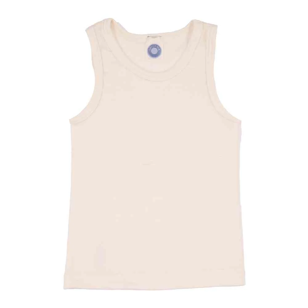 Débardeur enfant en pure laine mérinos biologique et soie naturelle de la marque allemande Cosilana. Un vêtement essentiel en toutes saisons pour accompagner votre enfant : porté seul l’été ou en sous vêtement l’hiver. 100% naturel, non traité et excellente sous-couche thermique.