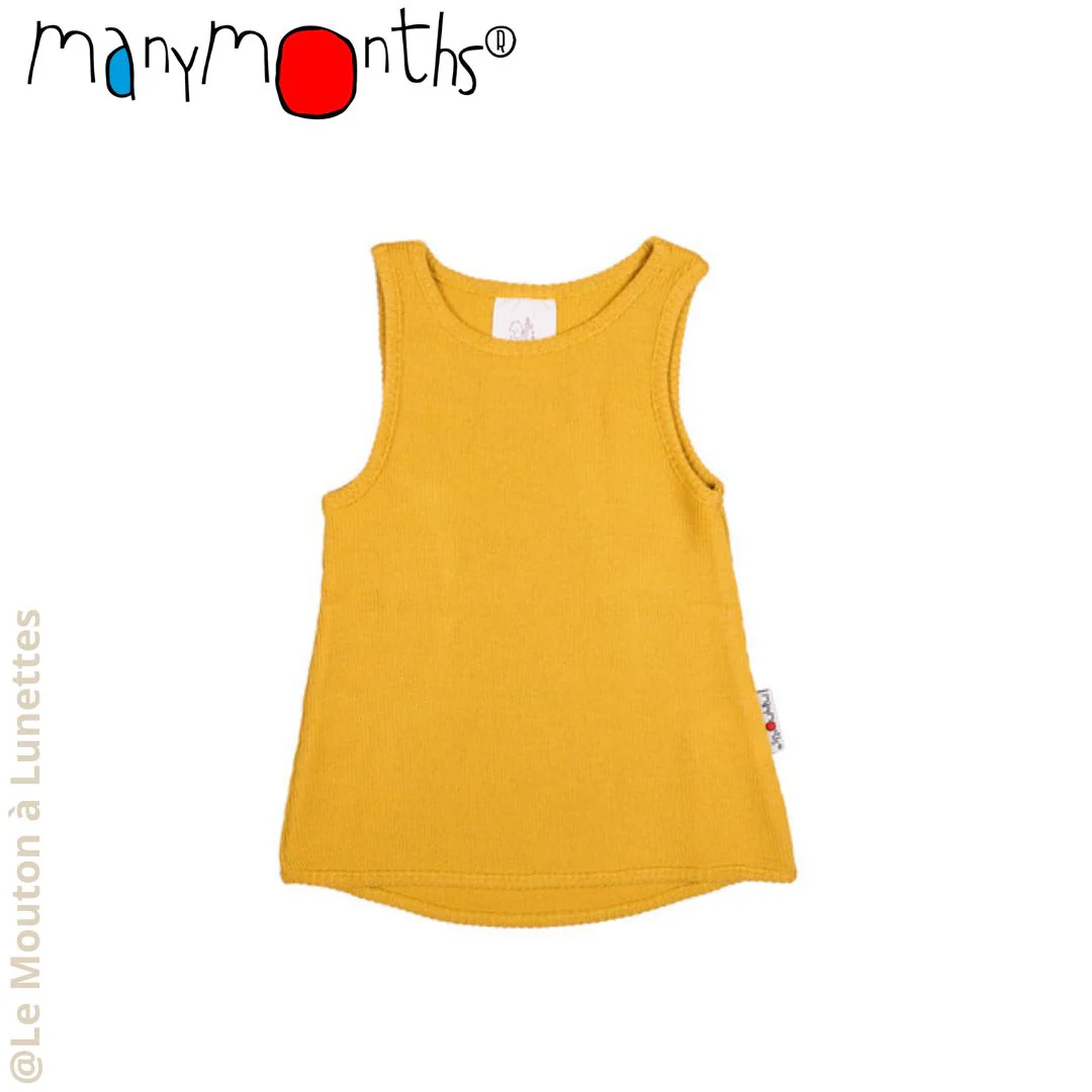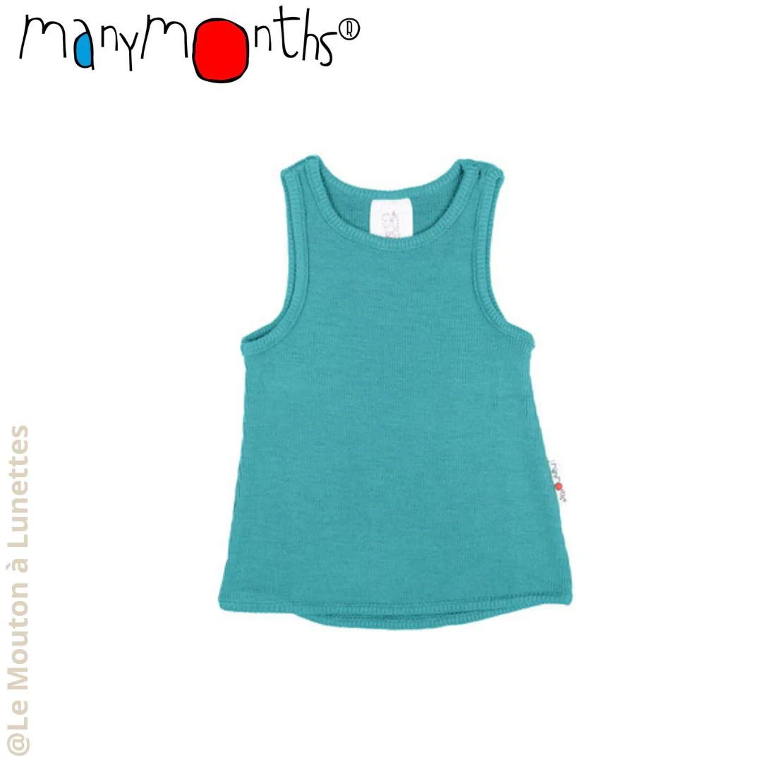 Un débardeur en pure laine mérinos non traitée de la marque finlandaise BabyIdea Manymonths. Un vêtement polyvalent fabriqué dans un tricot fin « 4 saisons » moins épais que le modèle standard, adapté à toutes les saisons.