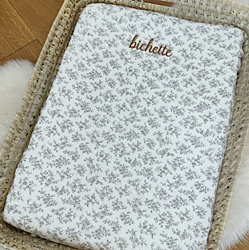 Ce drap housse s’adapte parfaitement à notre modèle de matelas pour panier à langer disponible juste ici..
