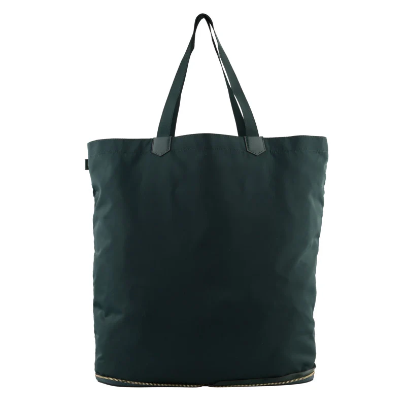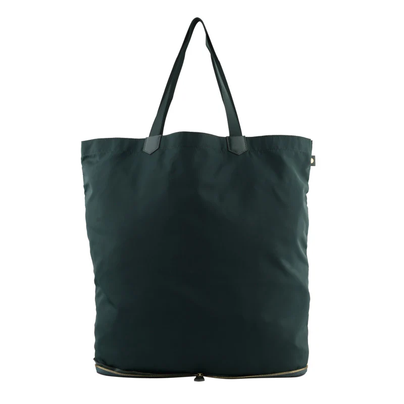 Le sac se transforme en pochette, idéale pour le ranger dans vos bagages. Sa forme rectangulaire et sa fermeture éclair sur le dessus, agrémentée d’un petit tirette, facilitent son utilisation.