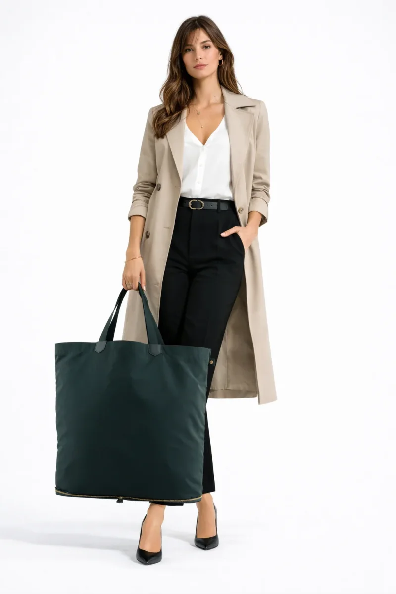 Doté d’une couleur verte foncée, ce sac se distingue par son aspect sobre et élégant. Fabriqué en cuir recouvert, il garantit une durabilité et une résistance idéales pour un usage quotidien. Ses dimensions généreuses de 55 x 46 x 18 cm permettent d’optimiser l’espace tout en restant facile à transporter.