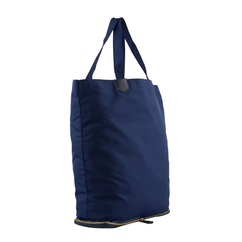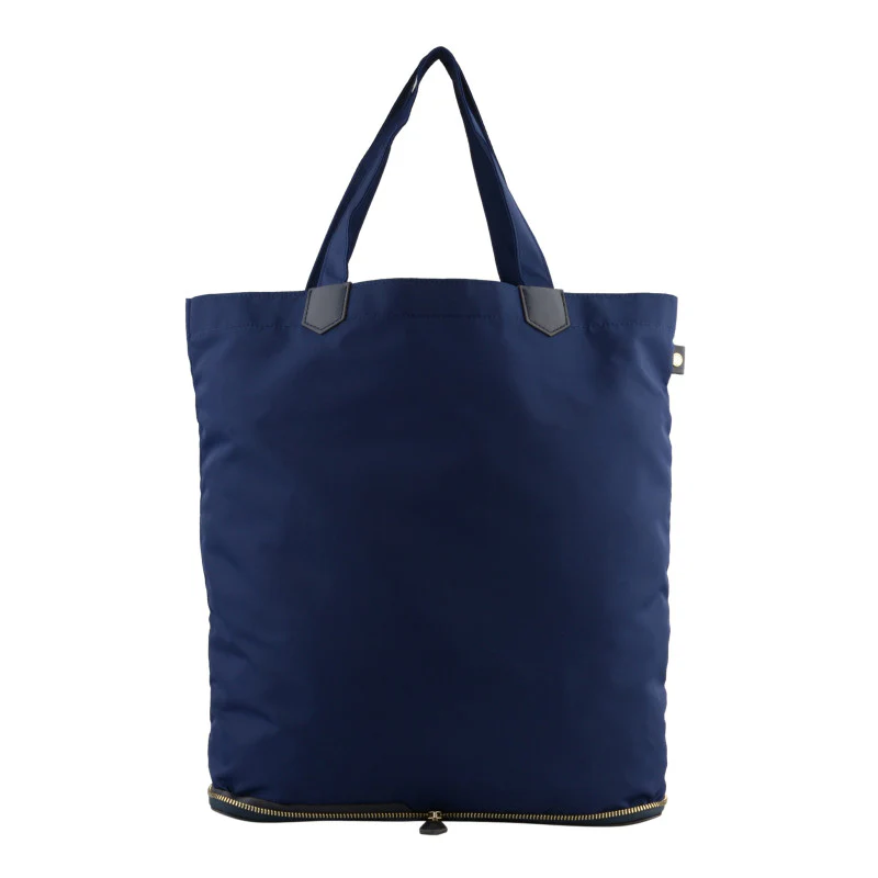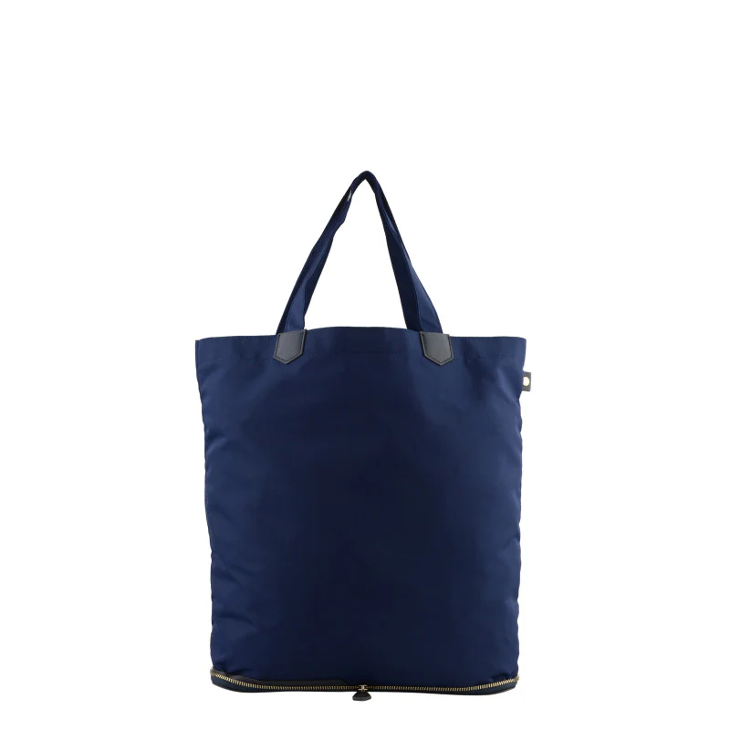 Le sac peut se transformer en une pochette grâce à sa fermeture. Vous pouvez ainsi emporter votre cabas plié comme une pochette bien plus facilement dans vos bagages.