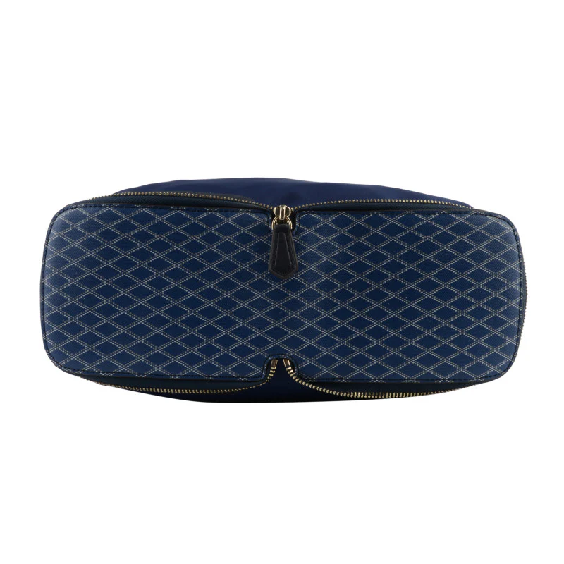 Le sac est principalement de couleur marine, ce qui lui confère une allure élégante et intemporelle. Fabriqué en cuir recouvert, ce modèle est idéal pour un usage quotidien et les voyages, grâce à sa texture lisse et facile à nettoyer.