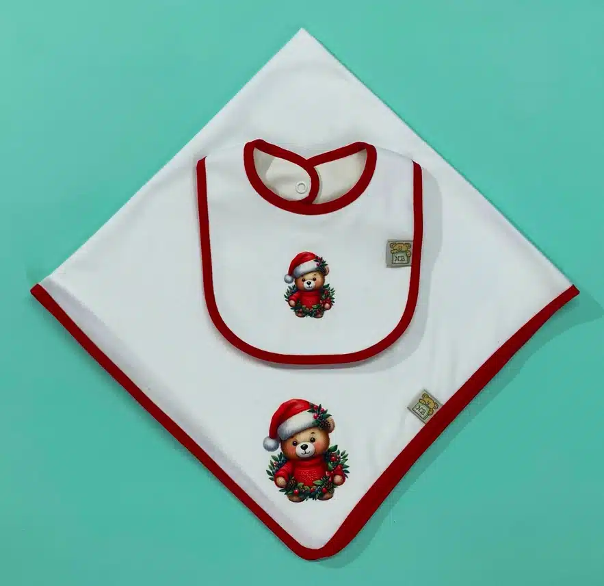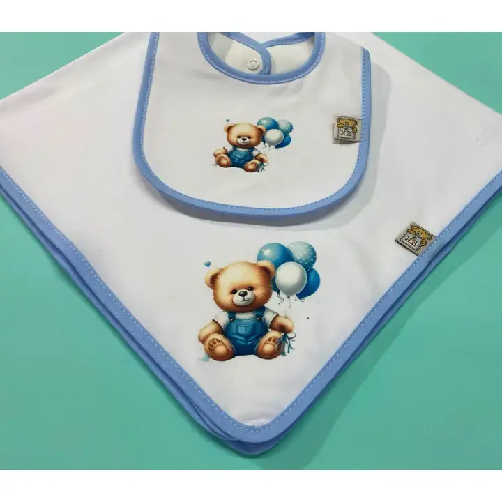 Ensemble Bavoir naissance et Lange – Divers coloris imprimés