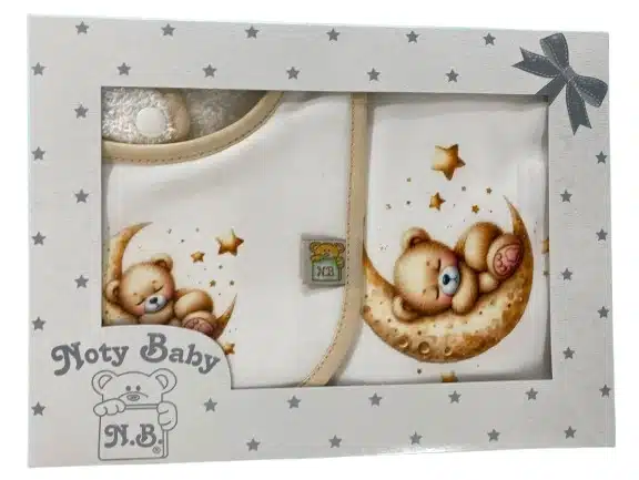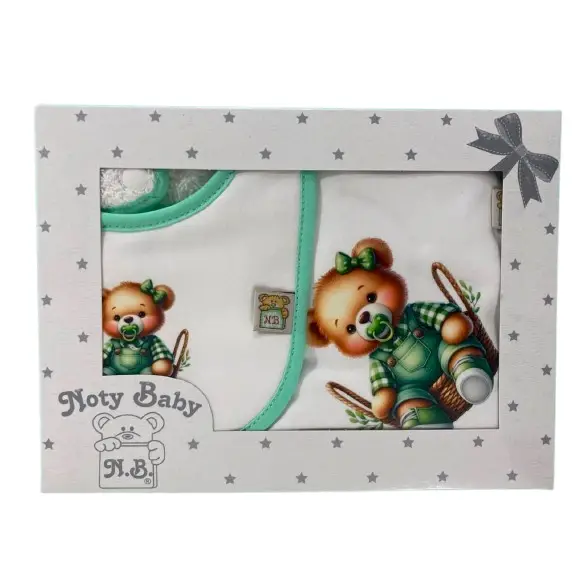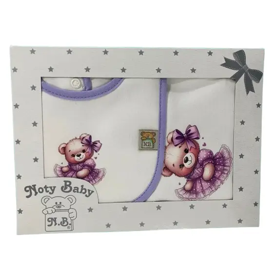 Découvrez l’ensemble bavoir naissance + lange Noty Baby, parfaitement adapté pour accompagner bébé au quotidien. Fabriqués dans un tissu doux et respirant, ces accessoires indispensables sont ornés d’illustrations adorables d’oursons.