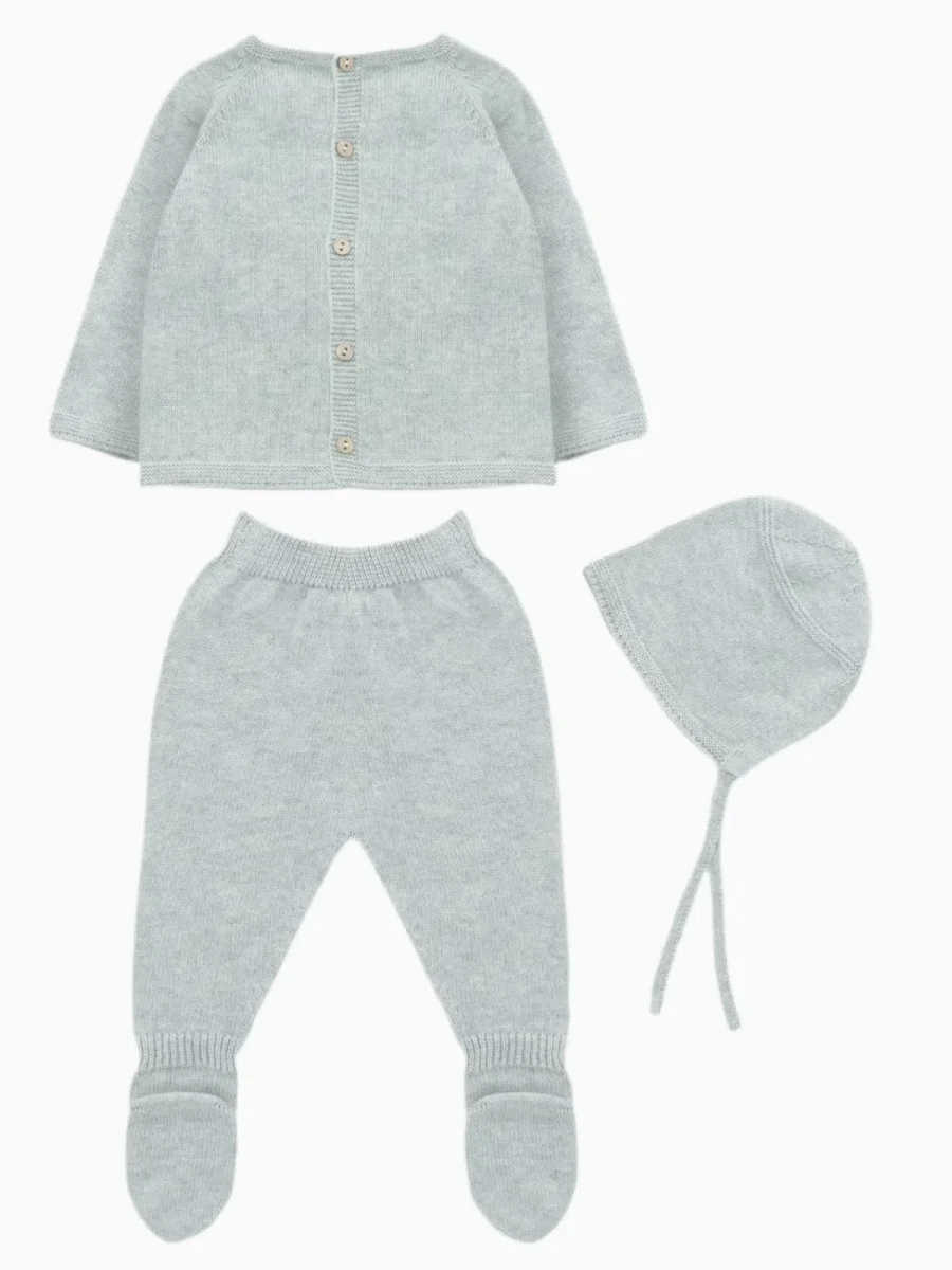 Ensemble comprenant : pull, pantalon à pieds, bonnet Pull à encolure ronde et patte de boutonnage au dos Fabriqué en Espagne Cet ensemble taille normalement. Choisissez la taille habituelle.