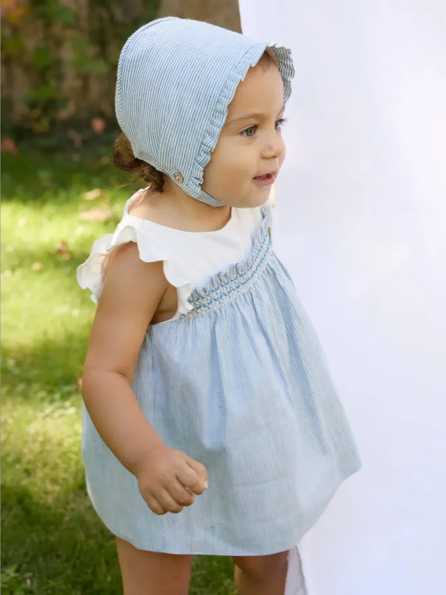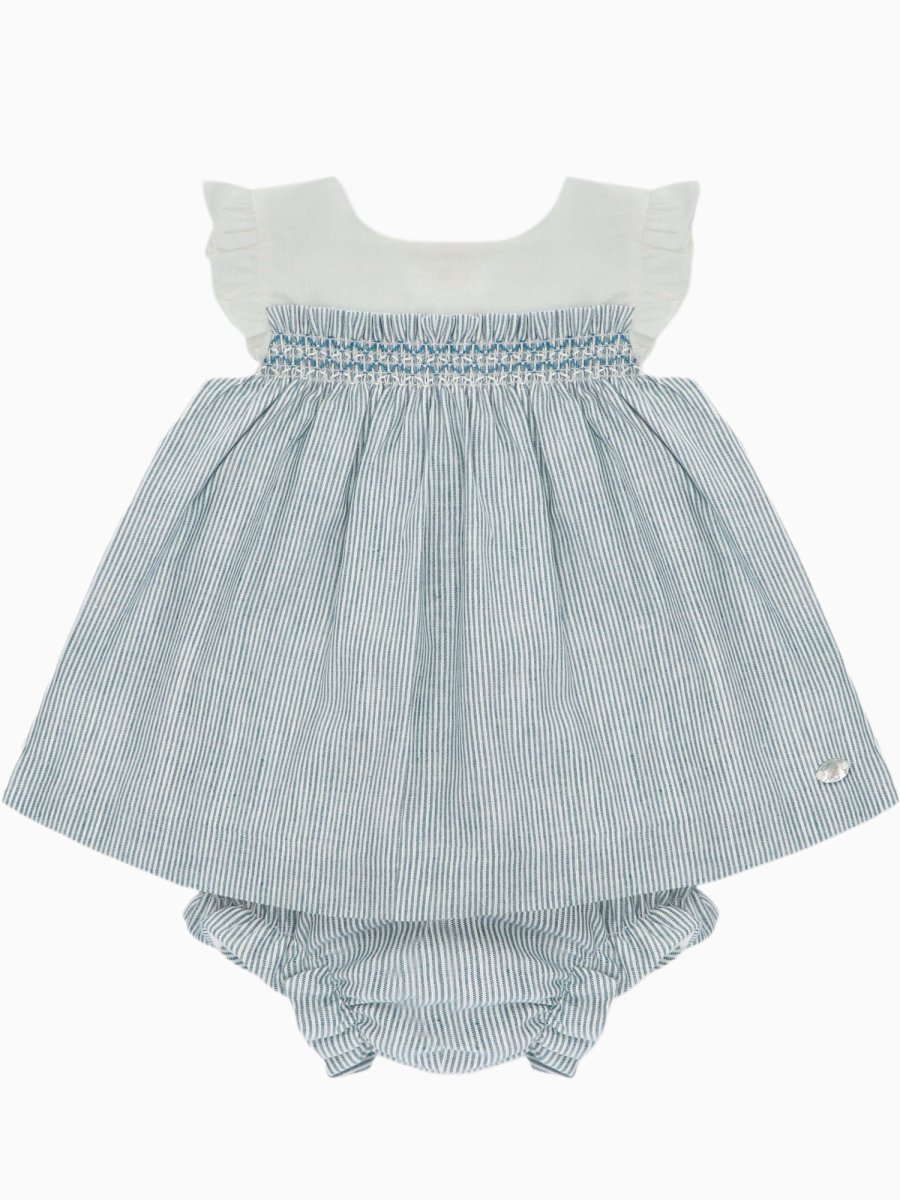 Ensemble bébé fille à smocks – Bleu/blanc