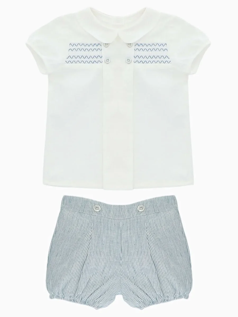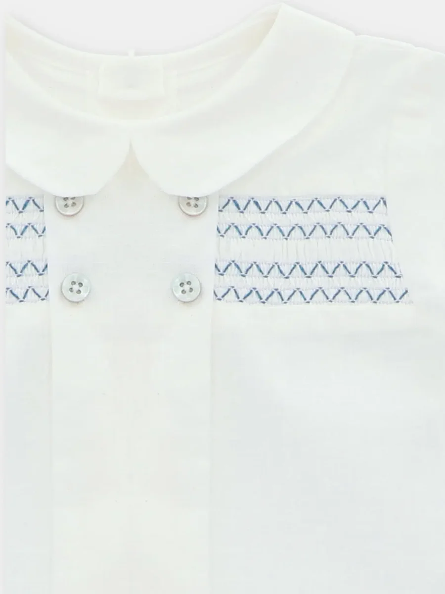 Ensemble bébé garçon à smocks – Bleu/blanc