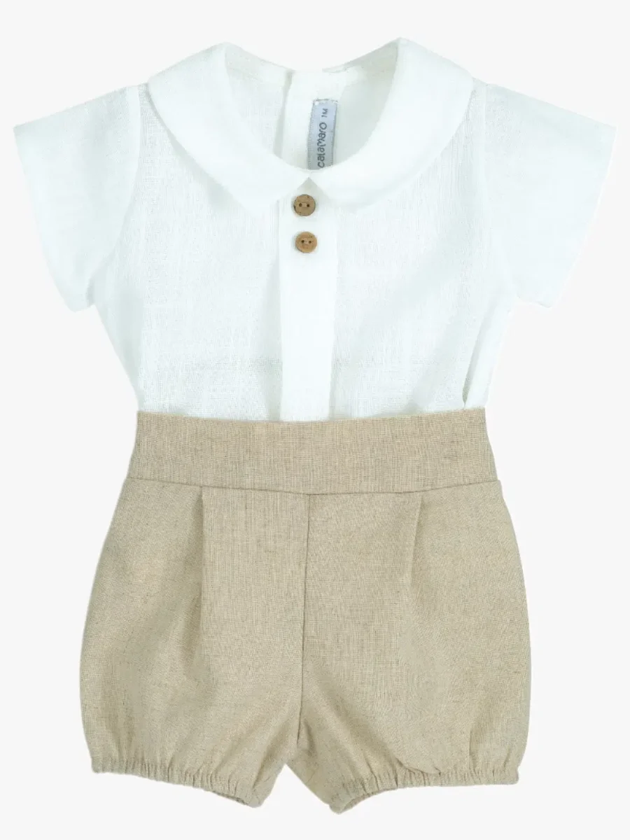 Ensemble bébé garçon chemise et bloomer – Beige