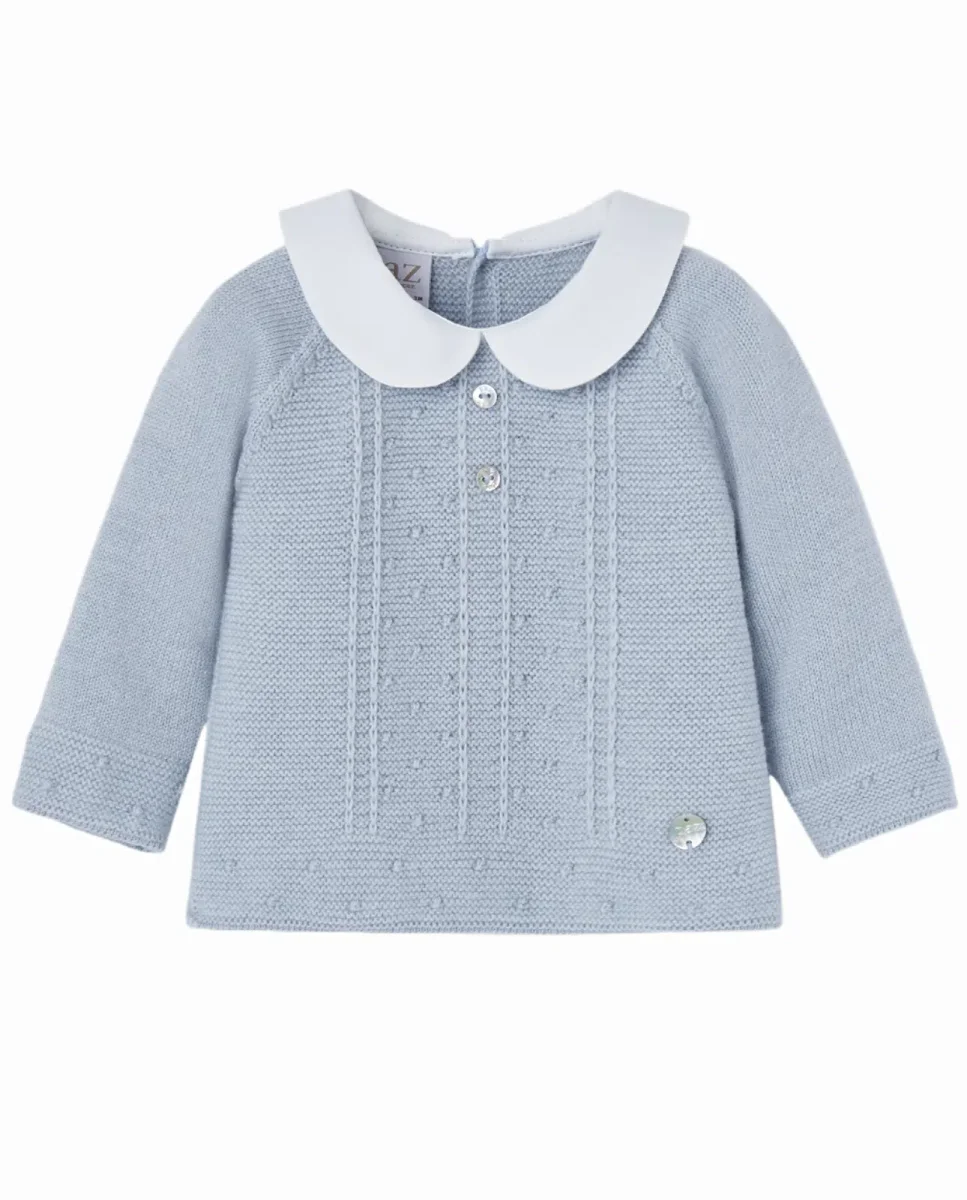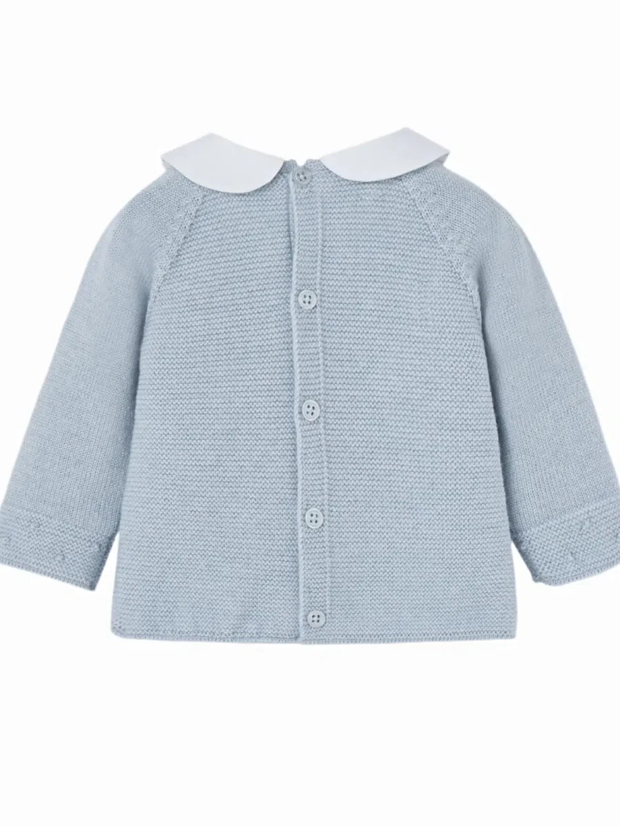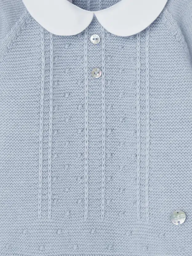 Ensemble bébé pull en laine et pantalon à pieds point mousse – Bleu