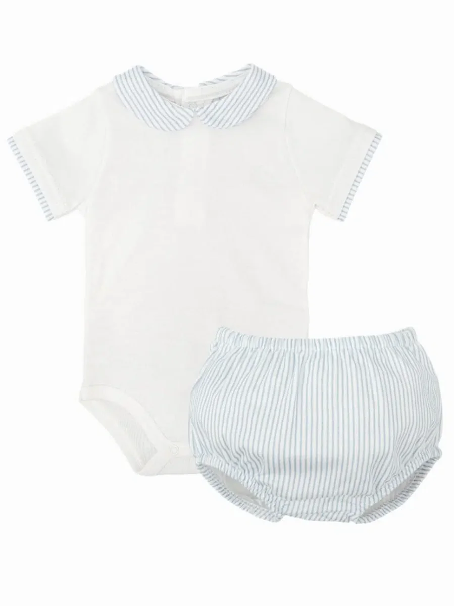 Ensemble body à col rayé et bloomer assorti – Bleu/blanc