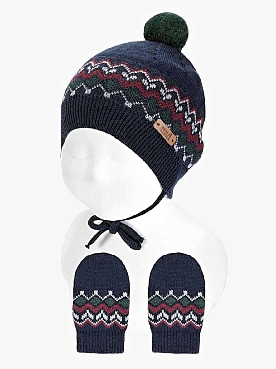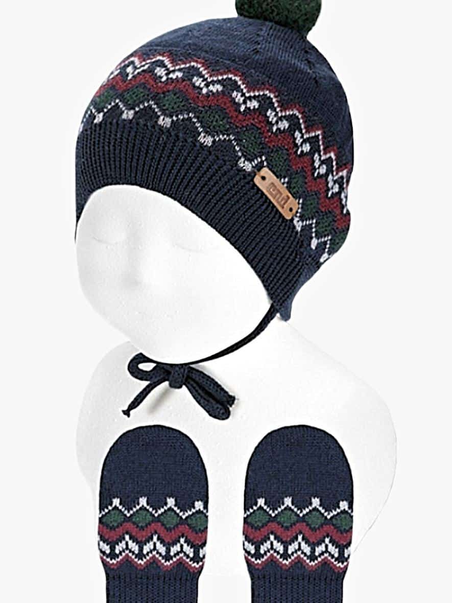 Le bonnet bleu marine, décoré de motifs hivernaux, est agrémenté d’un adorable pompon vert qui ajoute une touche de gaieté et de style. Les motifs hivernaux apportent une touche festive et charmante, parfaits pour la saison. Le bonnet est conçu avec un petit lien qui s’attache sous le cou, garantissant qu’il reste bien en place même pendant les activités les plus énergiques de votre petit explorateur. Ce design pratique assure également une protection maximale contre le froid, en couvrant bien les oreilles et la tête.