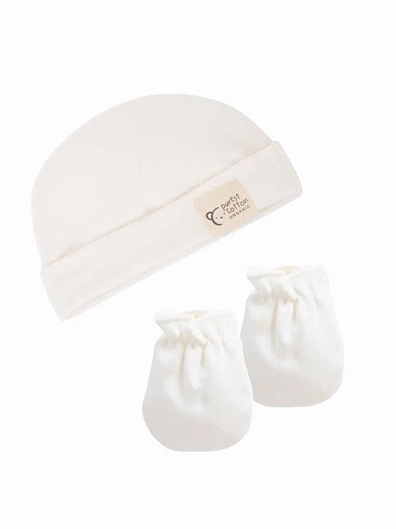 Bonnet et moufles de naissance Coutures extra-douces 100% coton biologique Fabriqués en Espagne