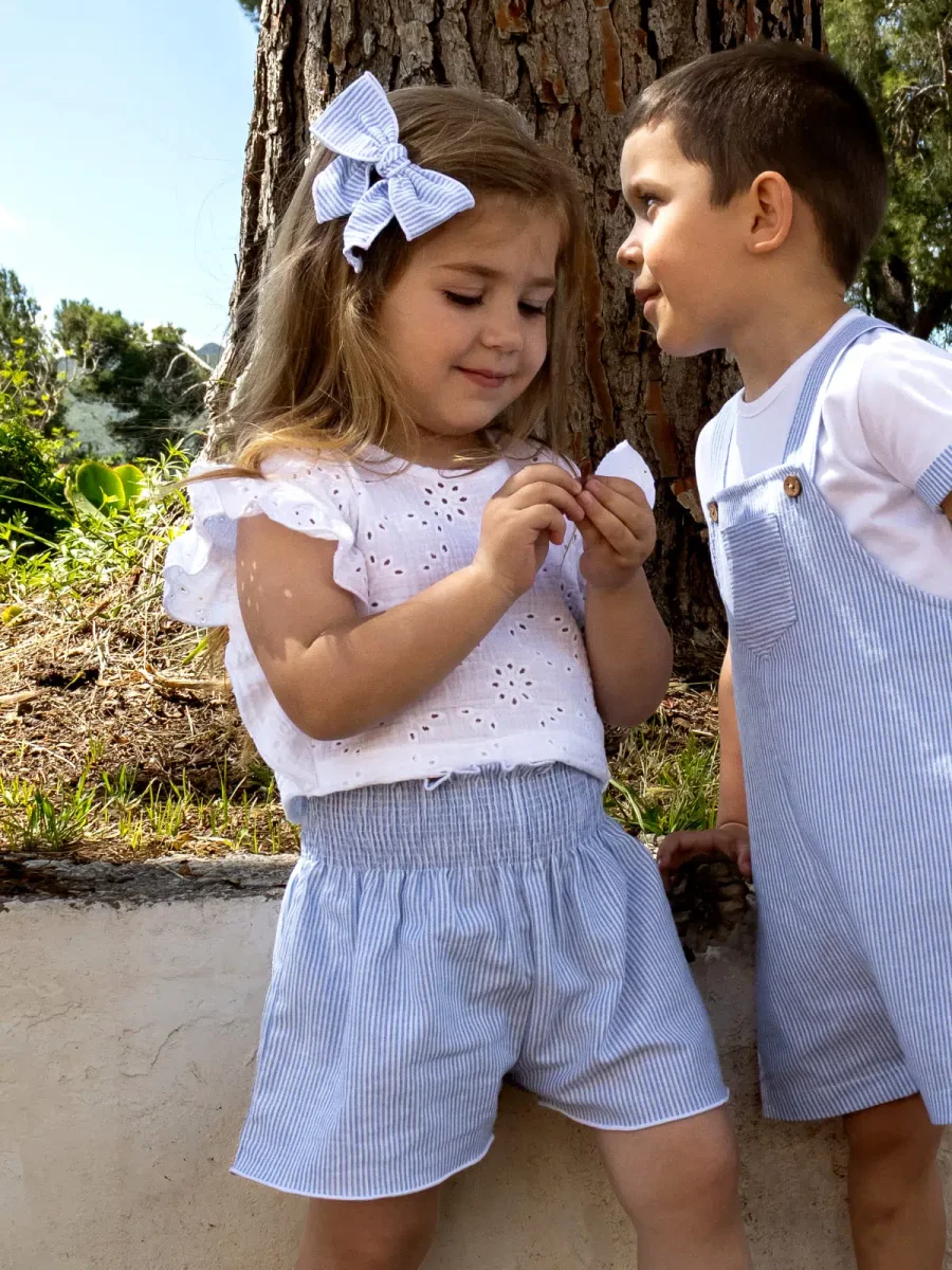 Ensemble fille short rayé et blouse volantée – Bleu/blanc
