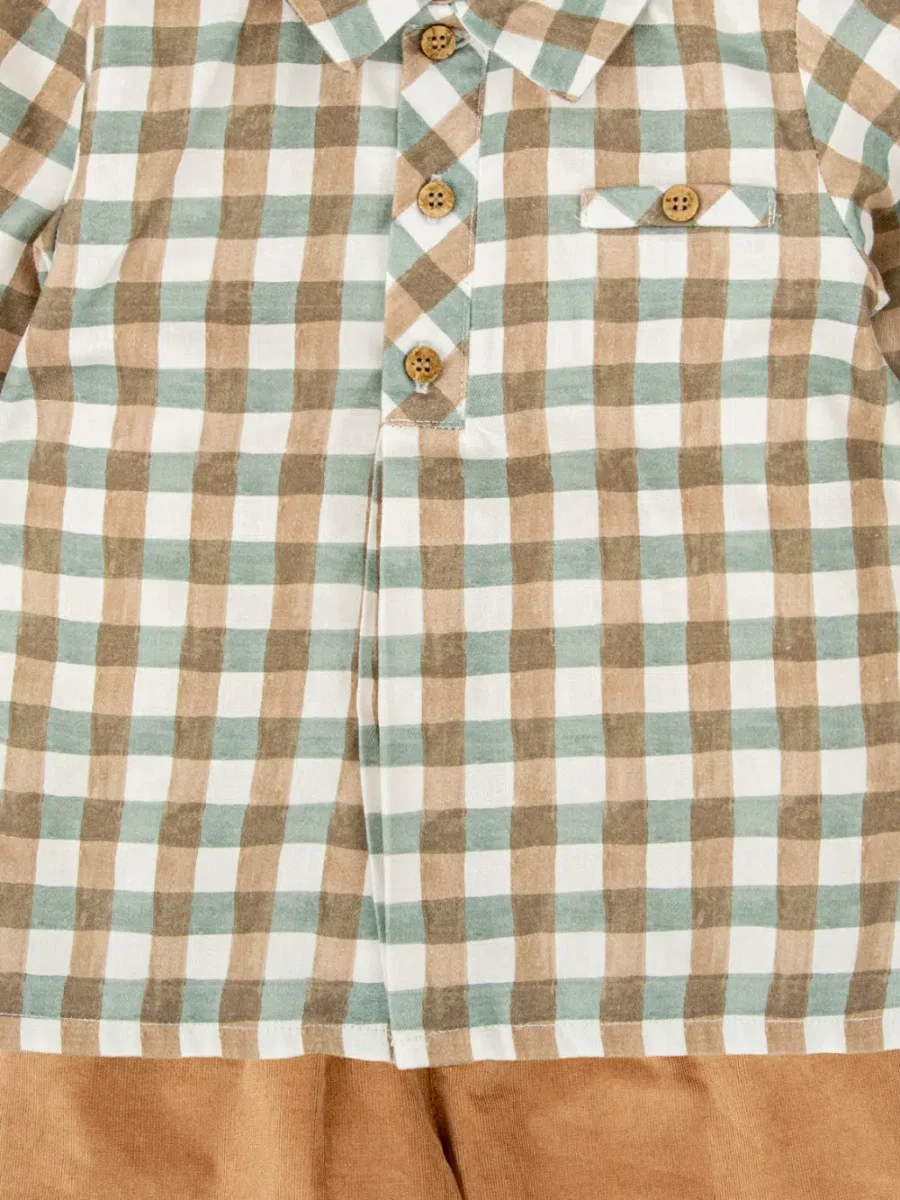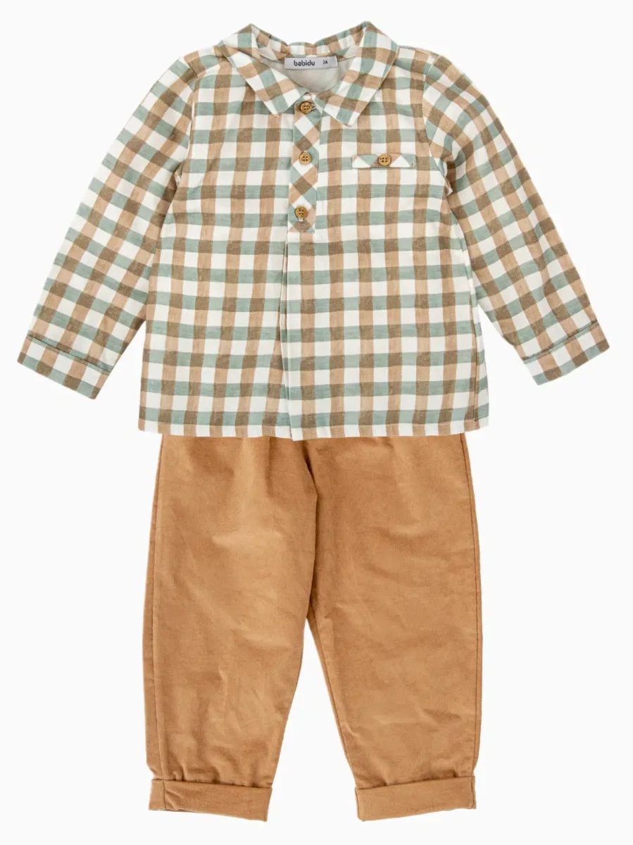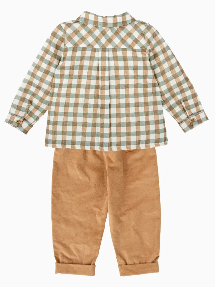 Ensemble garçon chemise à carreaux et pantalon – Vert/camel