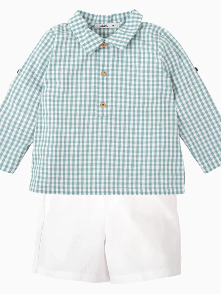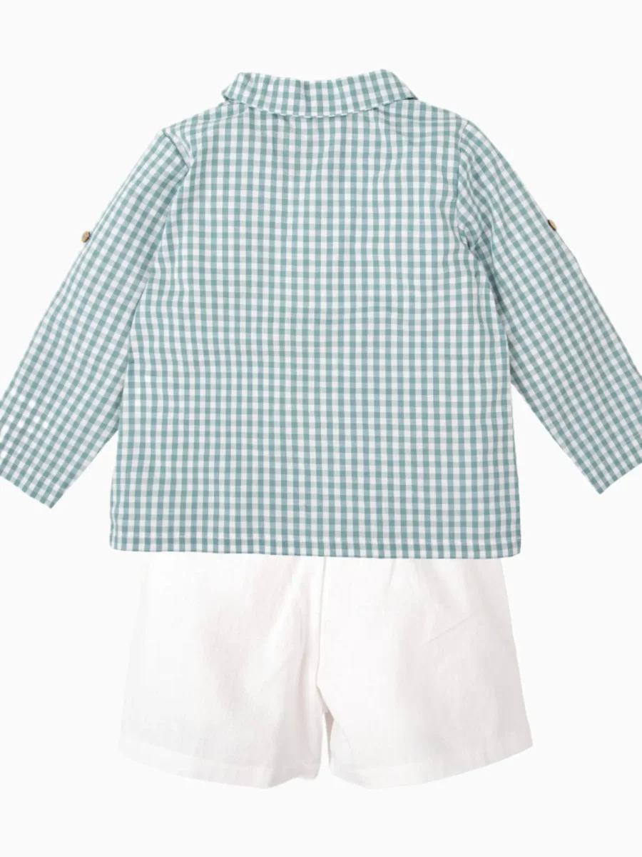 Ensemble garçon chemise vichy et short – Vert/blanc