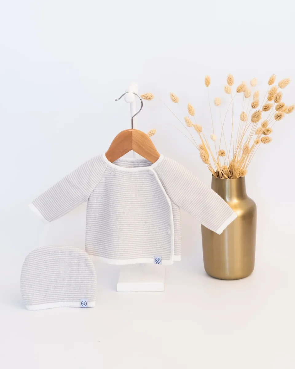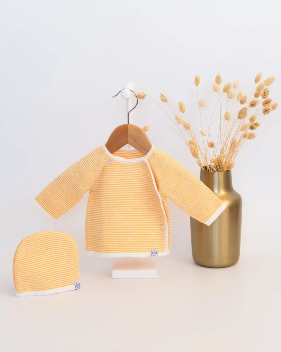 Un très joli ensemble milleraies en tricot pour naissance et bébé, une tenue élégante en acrylique qui apportera douceur et confort pour le bébé. Cet ensemble naissance est composé d’un bonnet en tricot ainsi qu’une brassière à bouton pour bébé. Tricoté en maille pleine et déclinable en plusieurs coloris, c’est un ensemble de naissance pour bébé fille ou bébé garçon, au final le plus dure c’est de choisir !